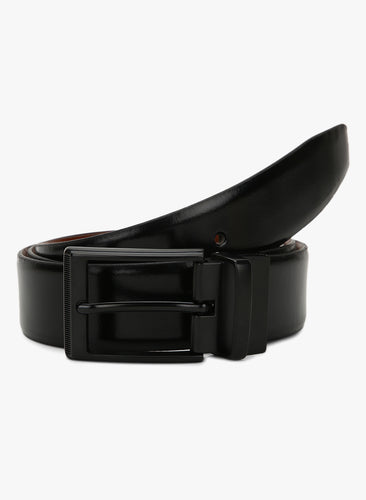 Teakwood Genuine Leather Men Black & Brown Solid Reversible Leather Belt