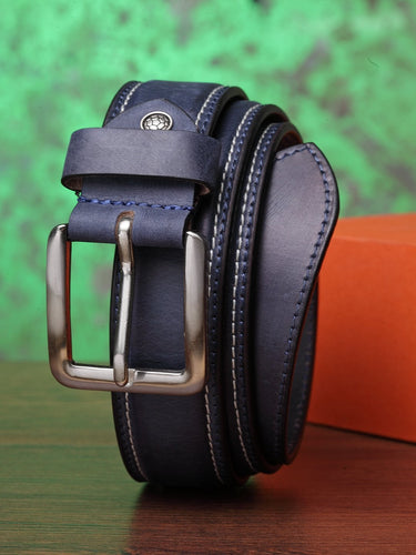 Teakwood Men Genuine Leather Dark Blue Solid Casual Belt