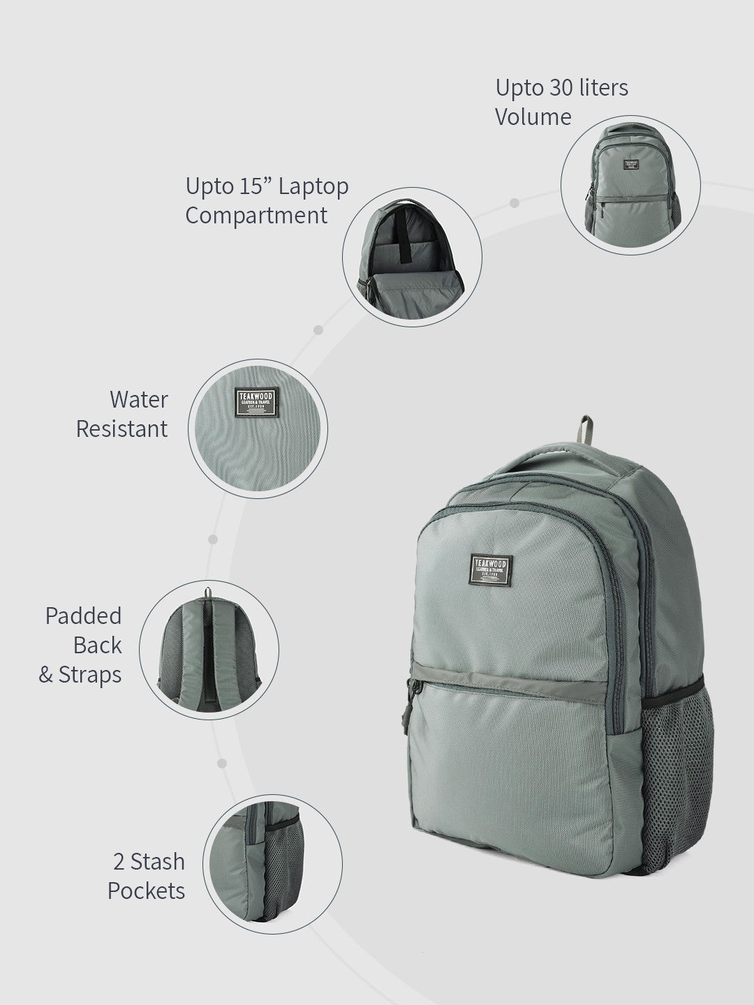 Teakwood Unisex Backpack with 15 inch Laptop Compartment & Water Resistance