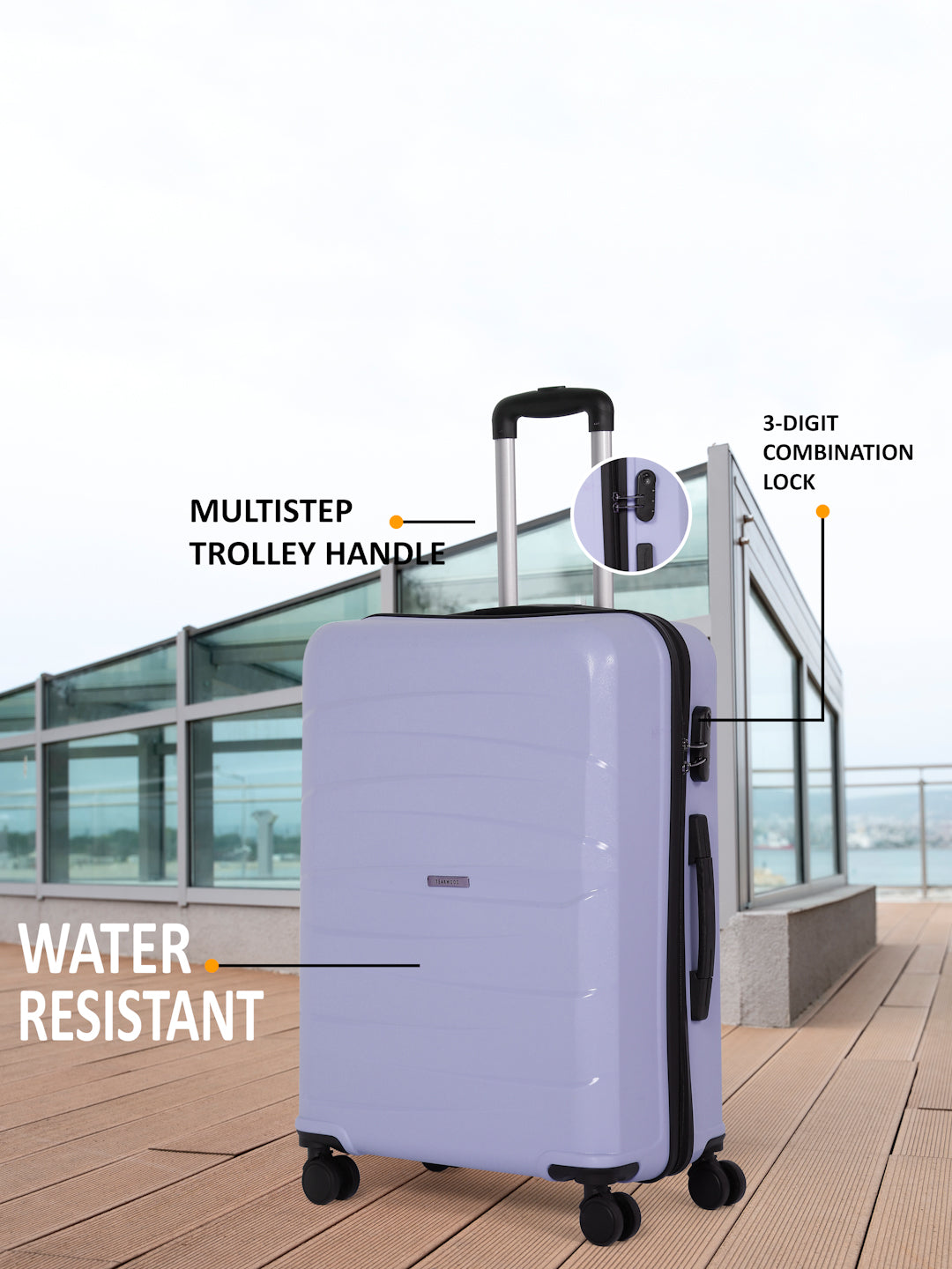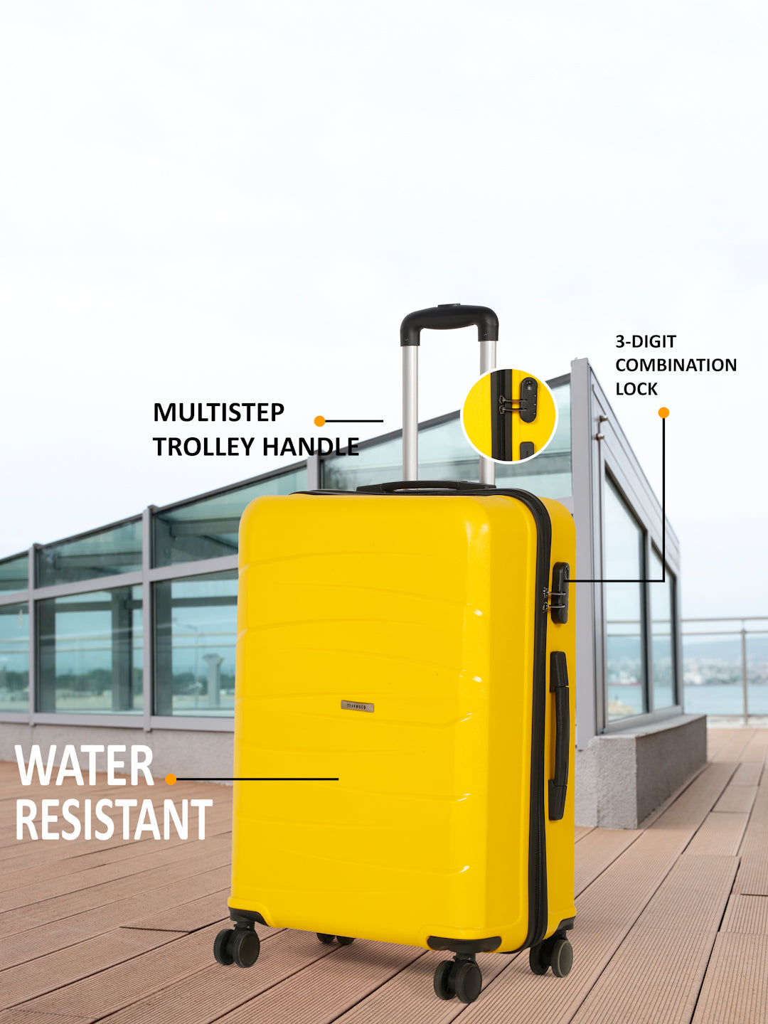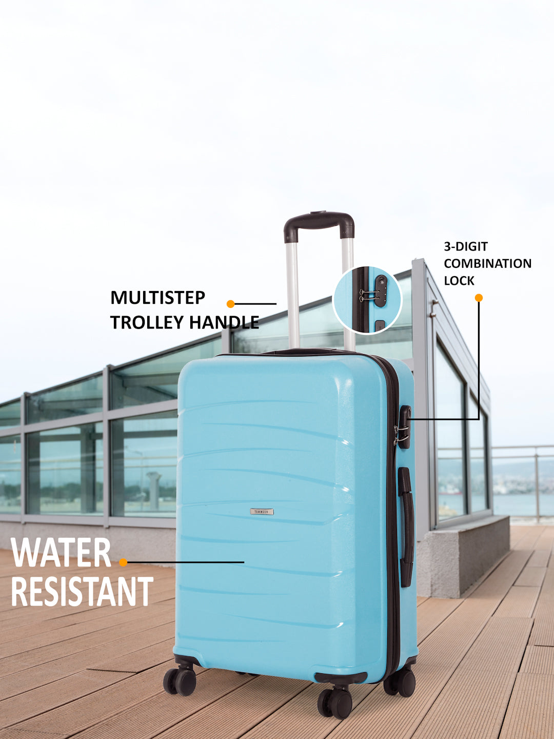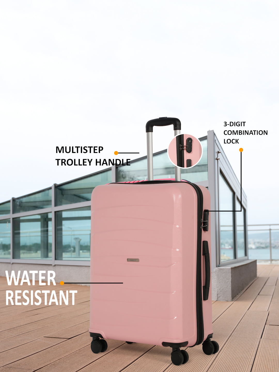 - DUNE hard-sided cabin-sized trolley bag secured with a number lock