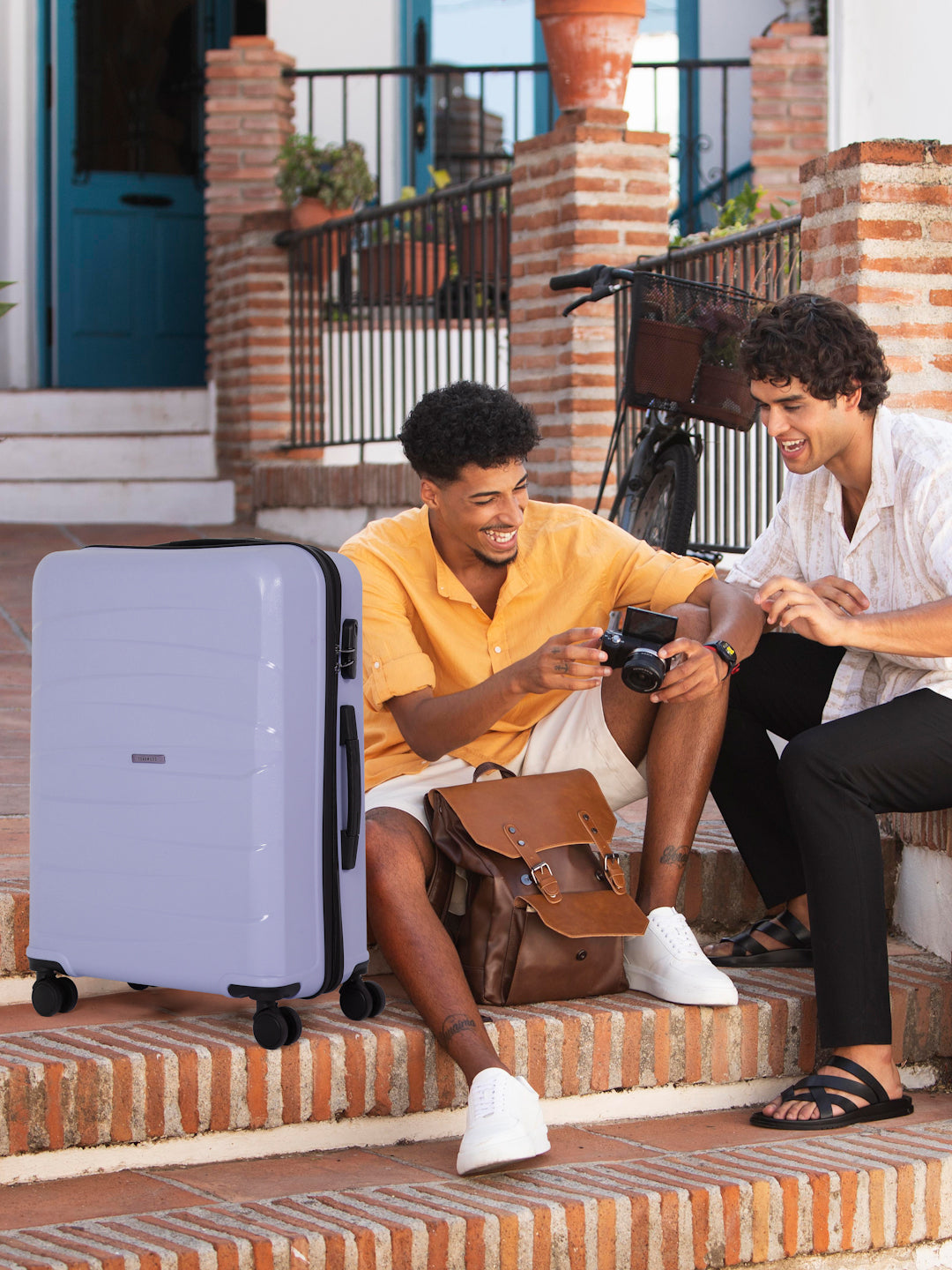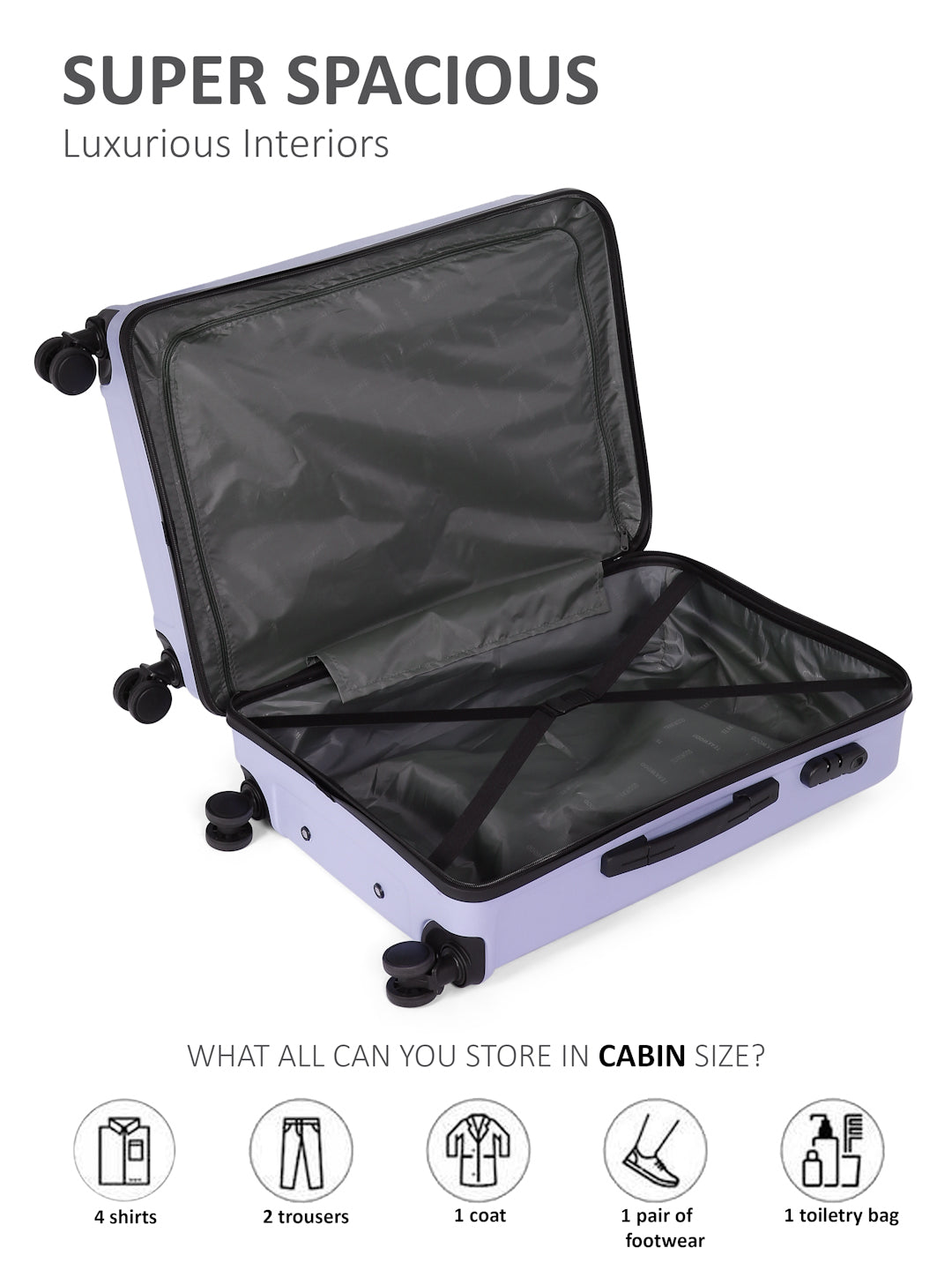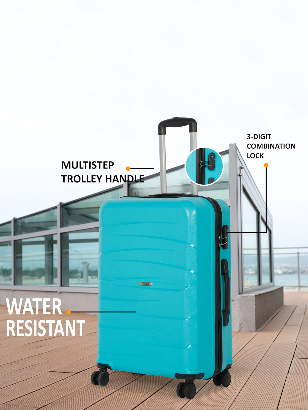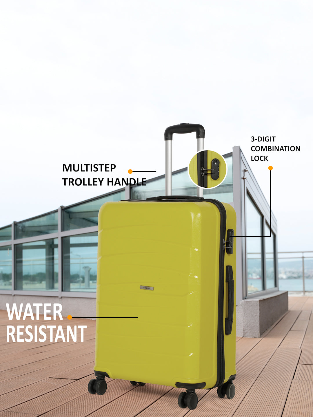 - DUNE hard-sided cabin-sized trolley bag secured with a number lock