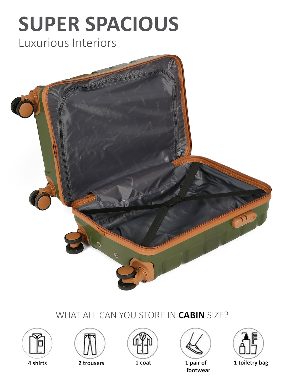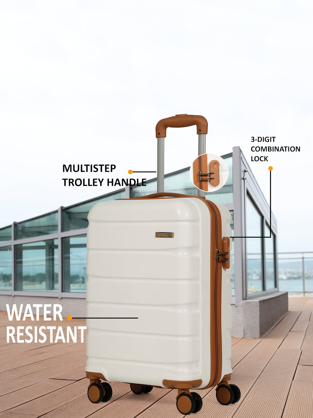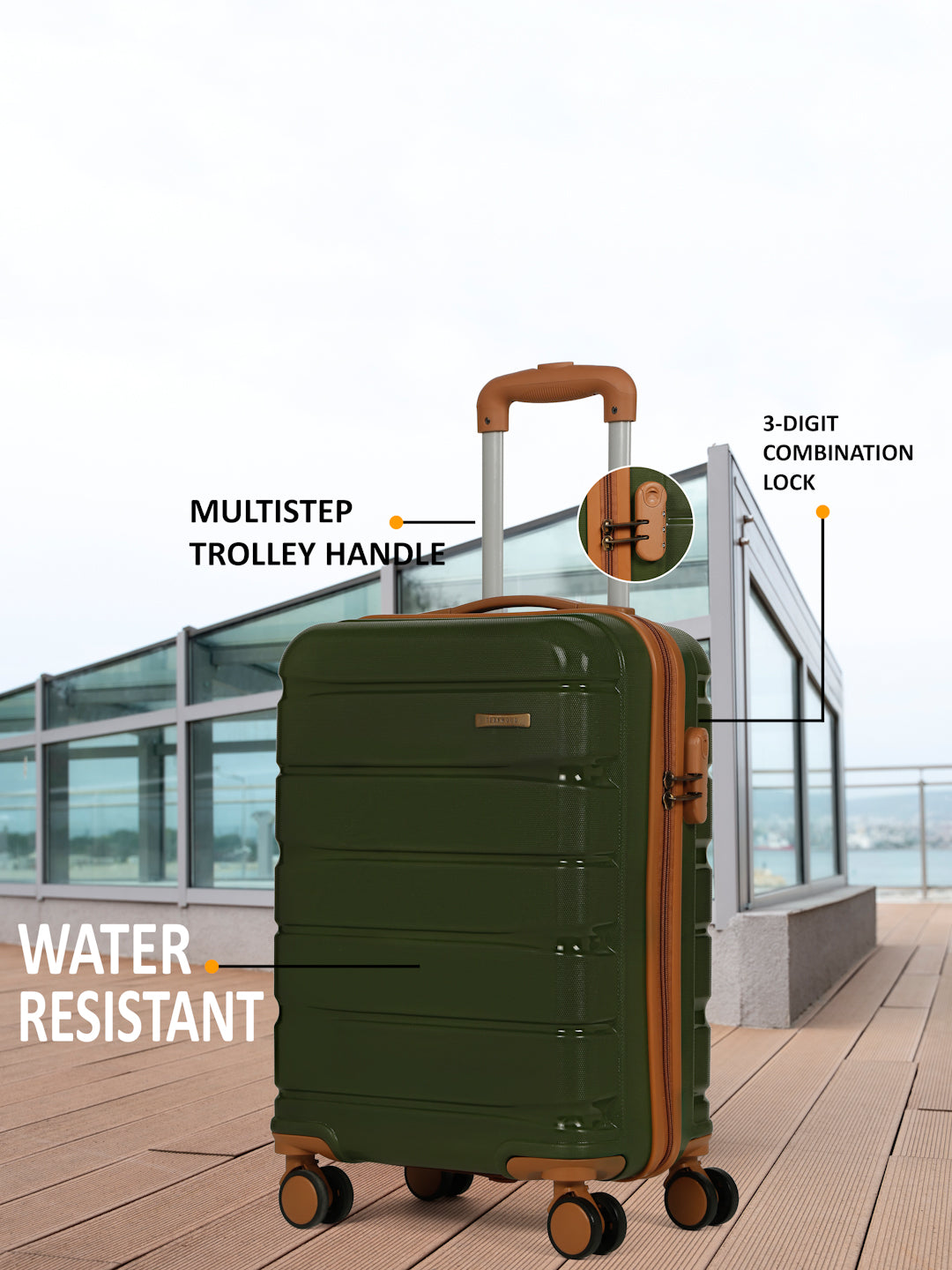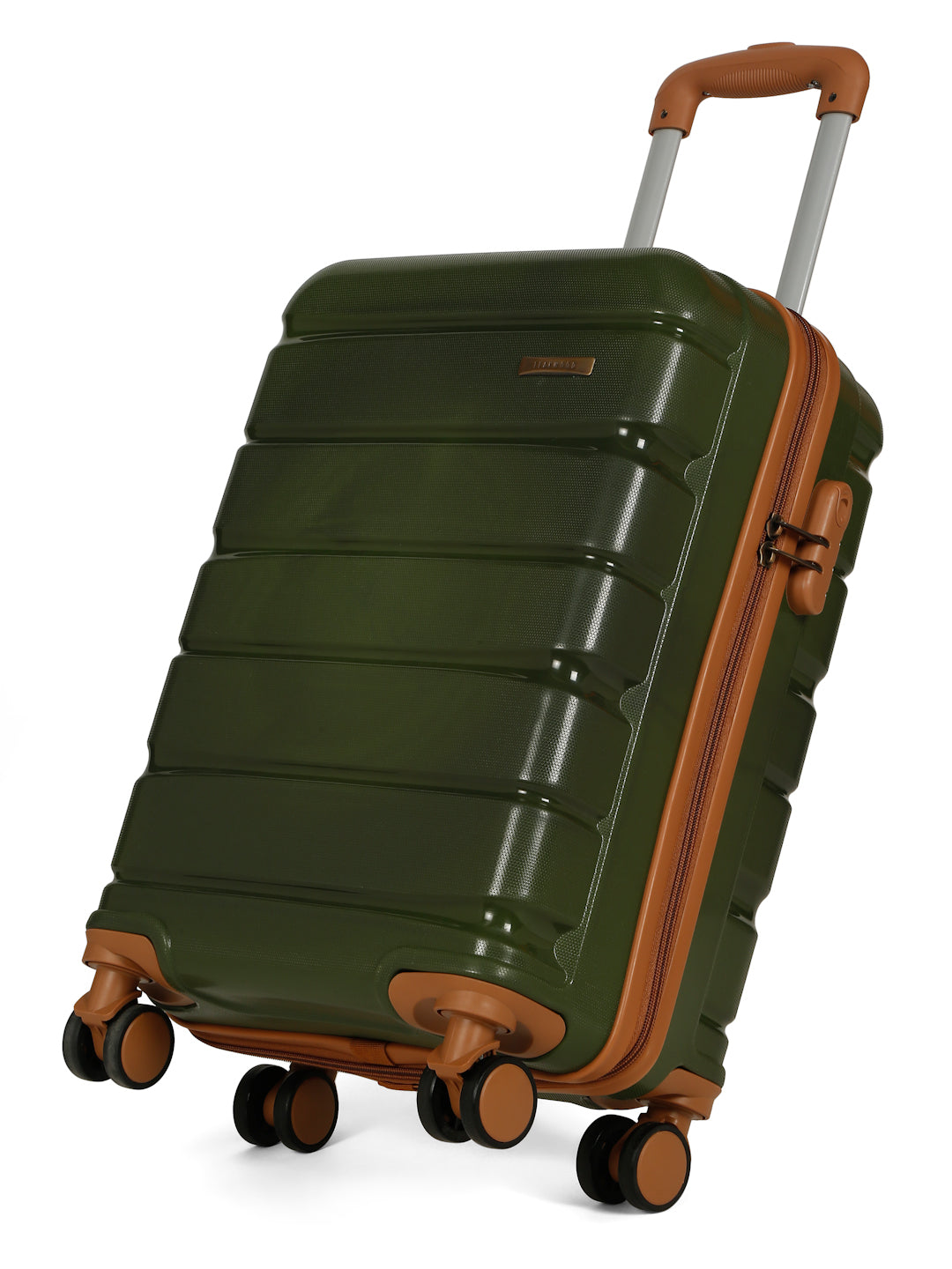 PRODUCT DETAILS: This Teakwood textured hard-sided cabin-sized trolley bag secured with a number lock One handle on the top and a retractable handle on the top Eight 360-degree rotatable corner-mounted skate wheels One main zip compartment Zip lining with two compression straps Has a sub-compartment, secured with a zip closure Warranty: 2 Years Warranty provided by brand/manufacturer