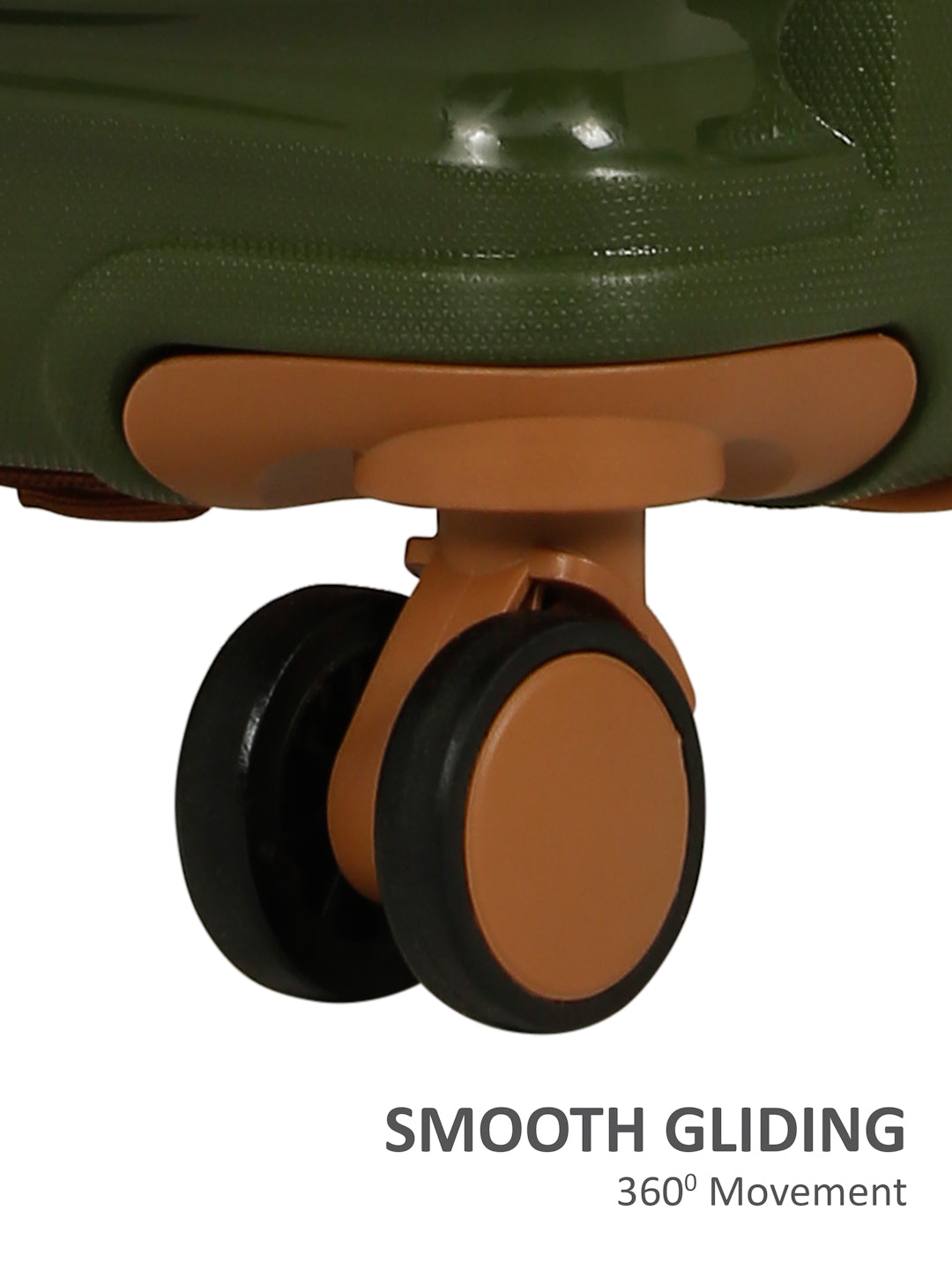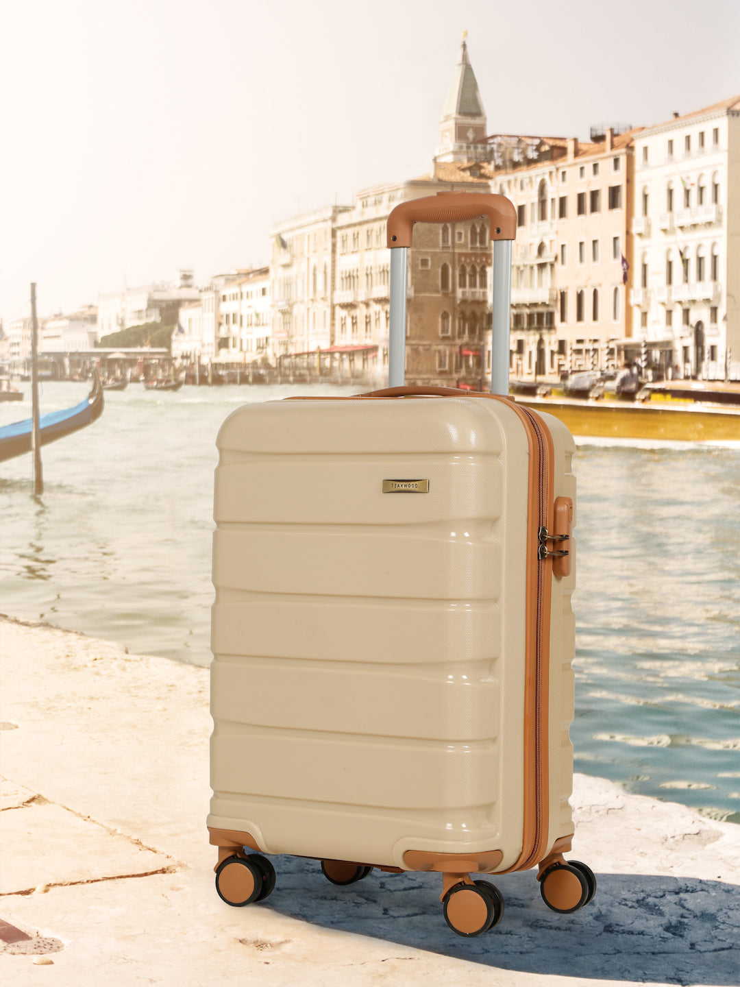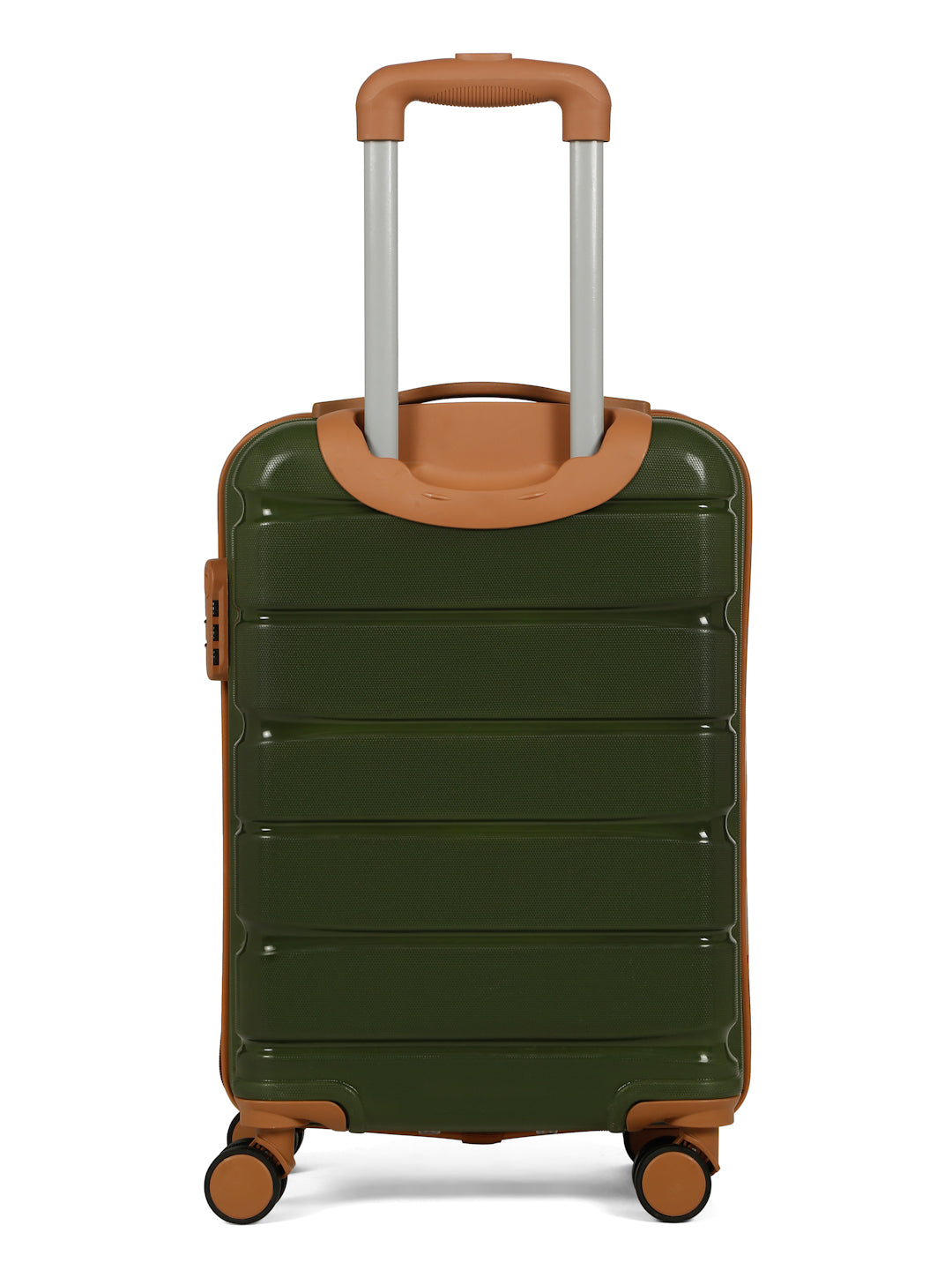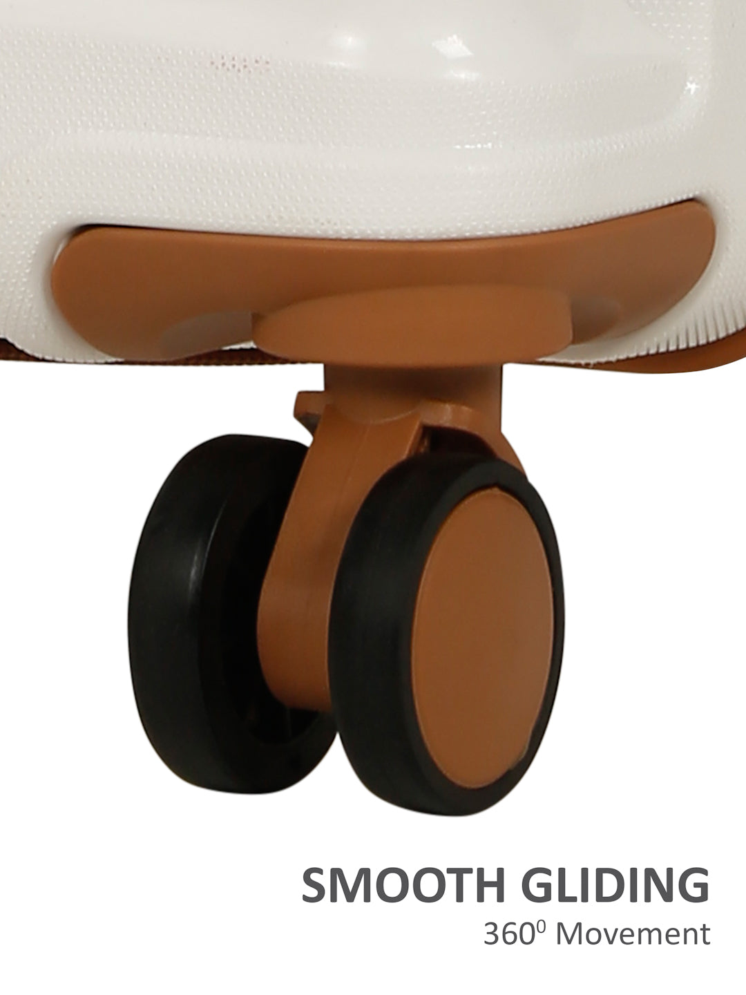 PRODUCT DETAILS: This Teakwood textured hard-sided cabin-sized trolley bag secured with a number lock One handle on the top and a retractable handle on the top Eight 360-degree rotatable corner-mounted skate wheels One main zip compartment Zip lining with two compression straps Has a sub-compartment, secured with a zip closure Warranty: 2 Years Warranty provided by brand/manufacturer