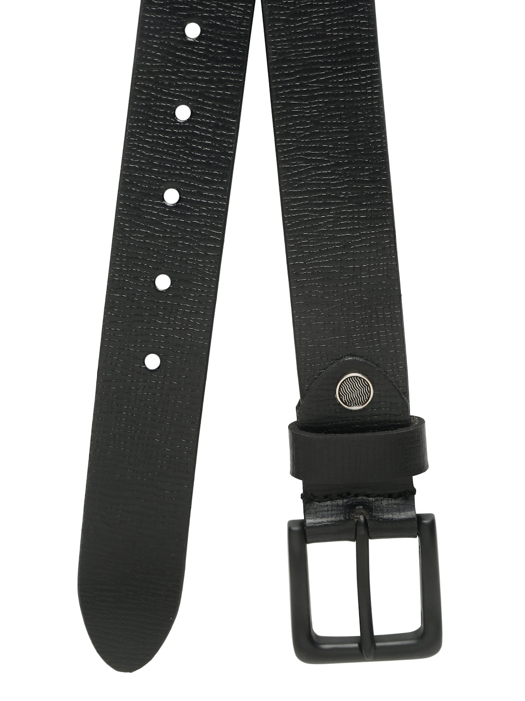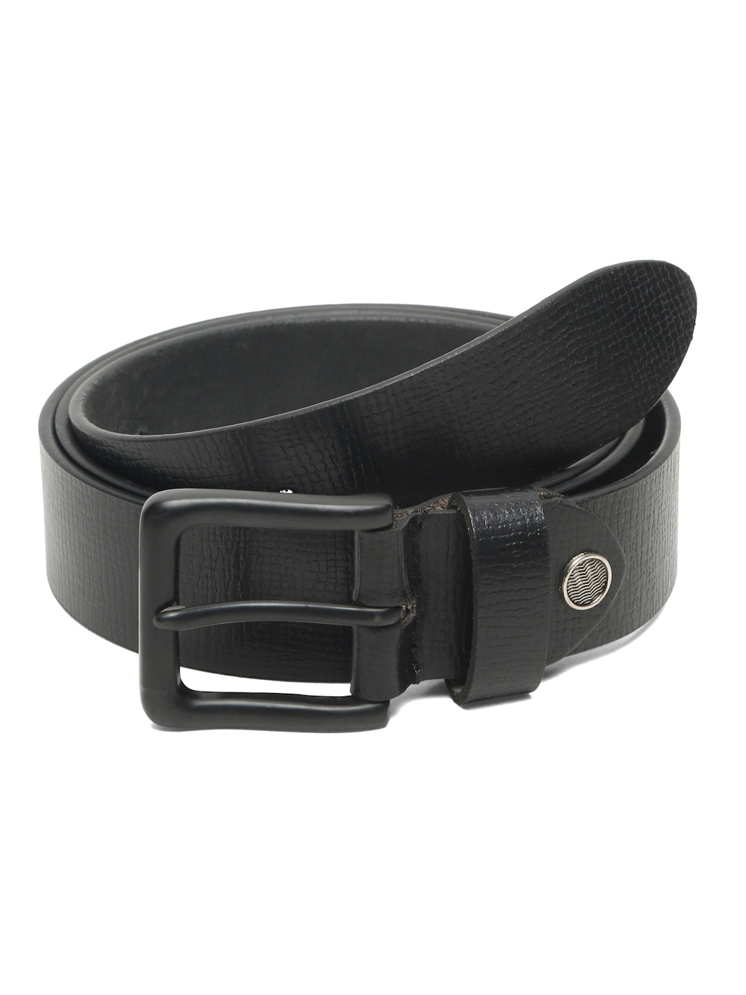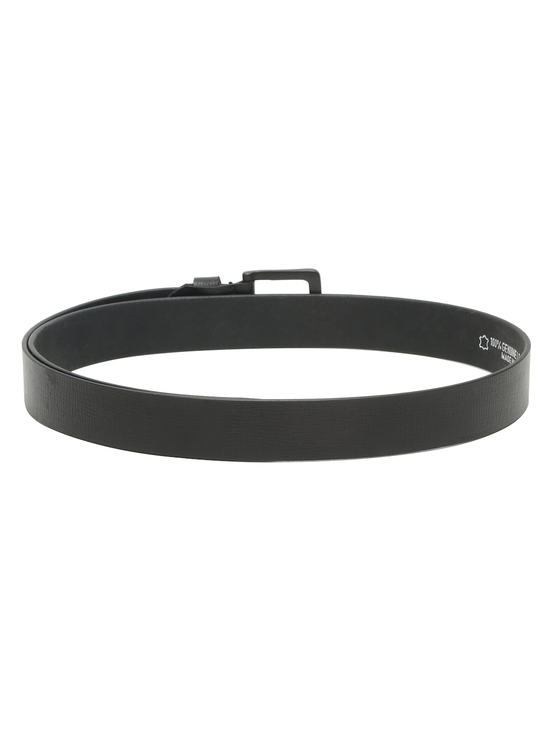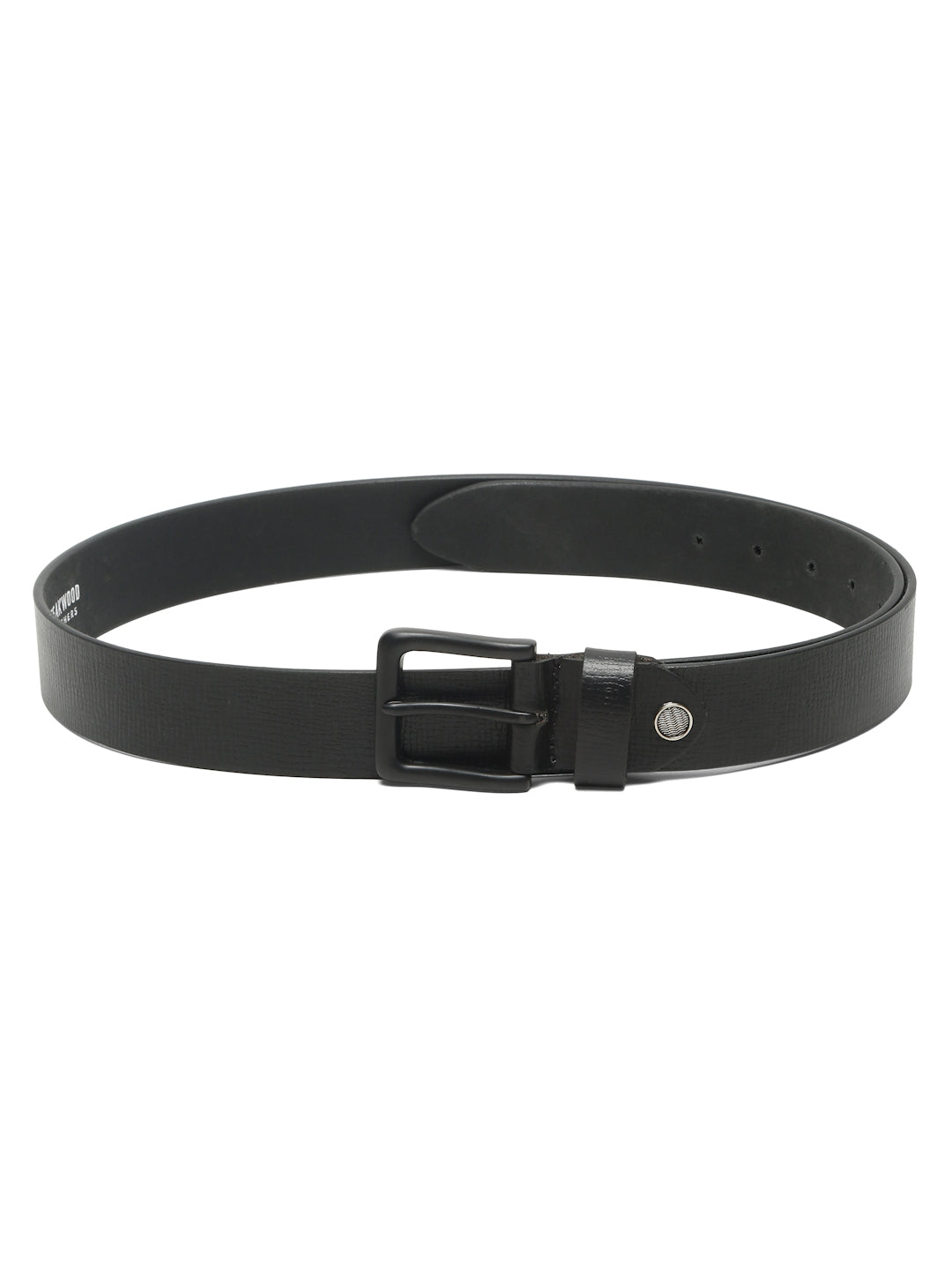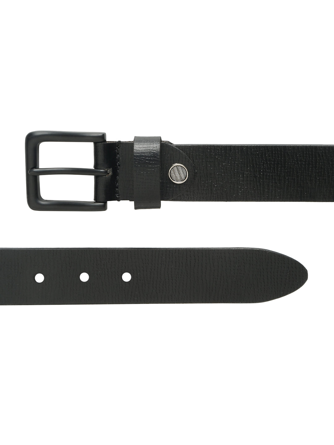 Upgrade your everyday style with this Teakwood Leather Men's Black Textured Leather Belt, featuring a sleek black buckle and a classic tang closure for a secure and adjustable fit. Crafted from high-quality genuine leather, this belt combines durability with a modern, sophisticated look, making it a versatile addition to any wardrobe.