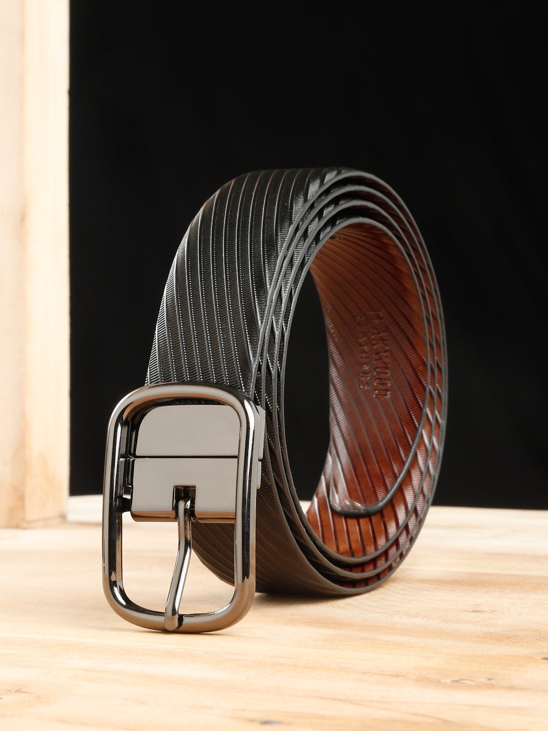 Men's Diagonal Texture Black & Brown Reversiable Belt