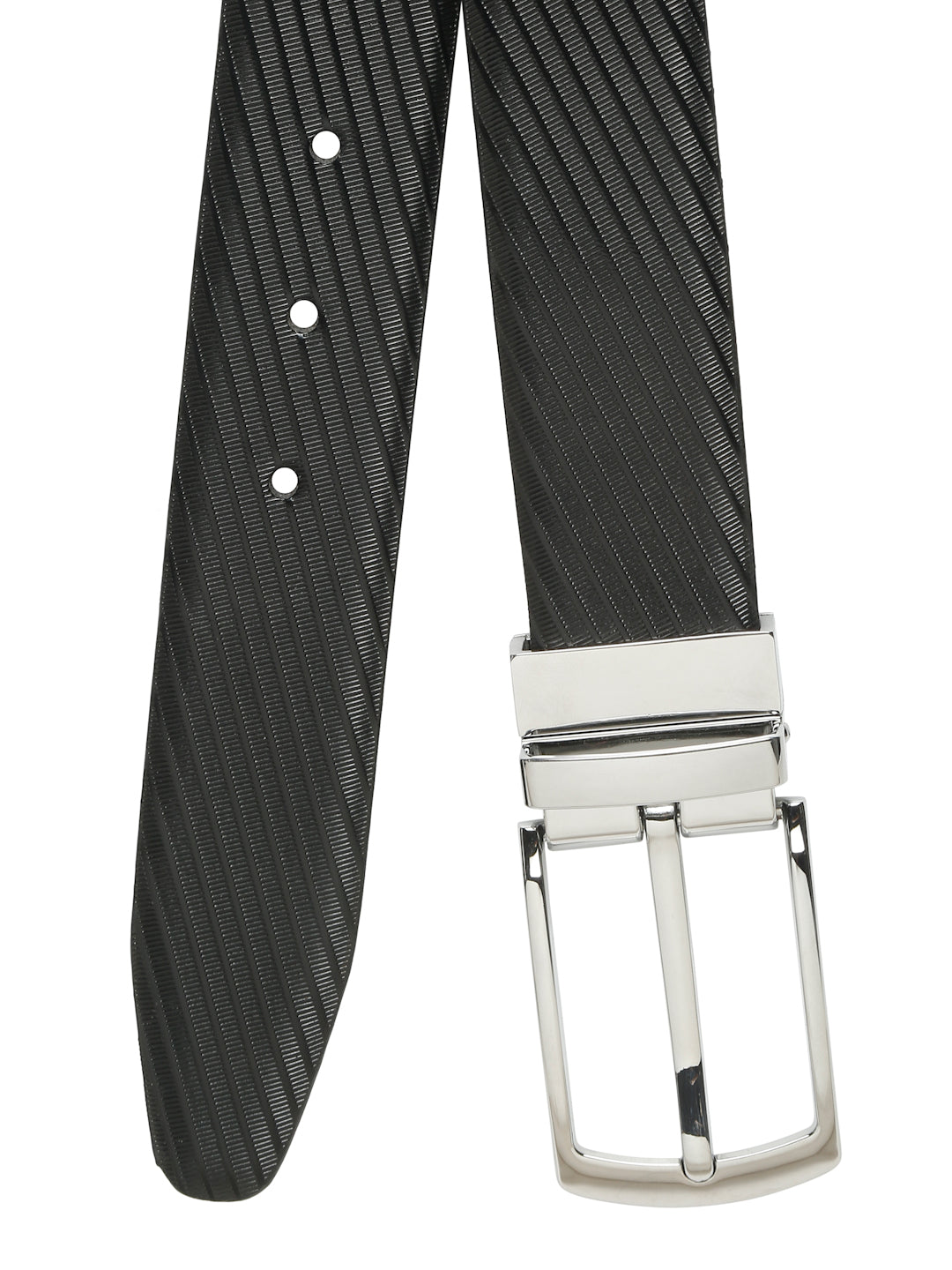 This Teakwood Leathers diagonal texture reversible leather belt combines luxury and practicality, making it an essential accessory for the modern man. Secure and easy-to-use silver tang closure for a comfortable fit and strap with reversible design with black on one side and brown on the other, providing versatility for different outfits.