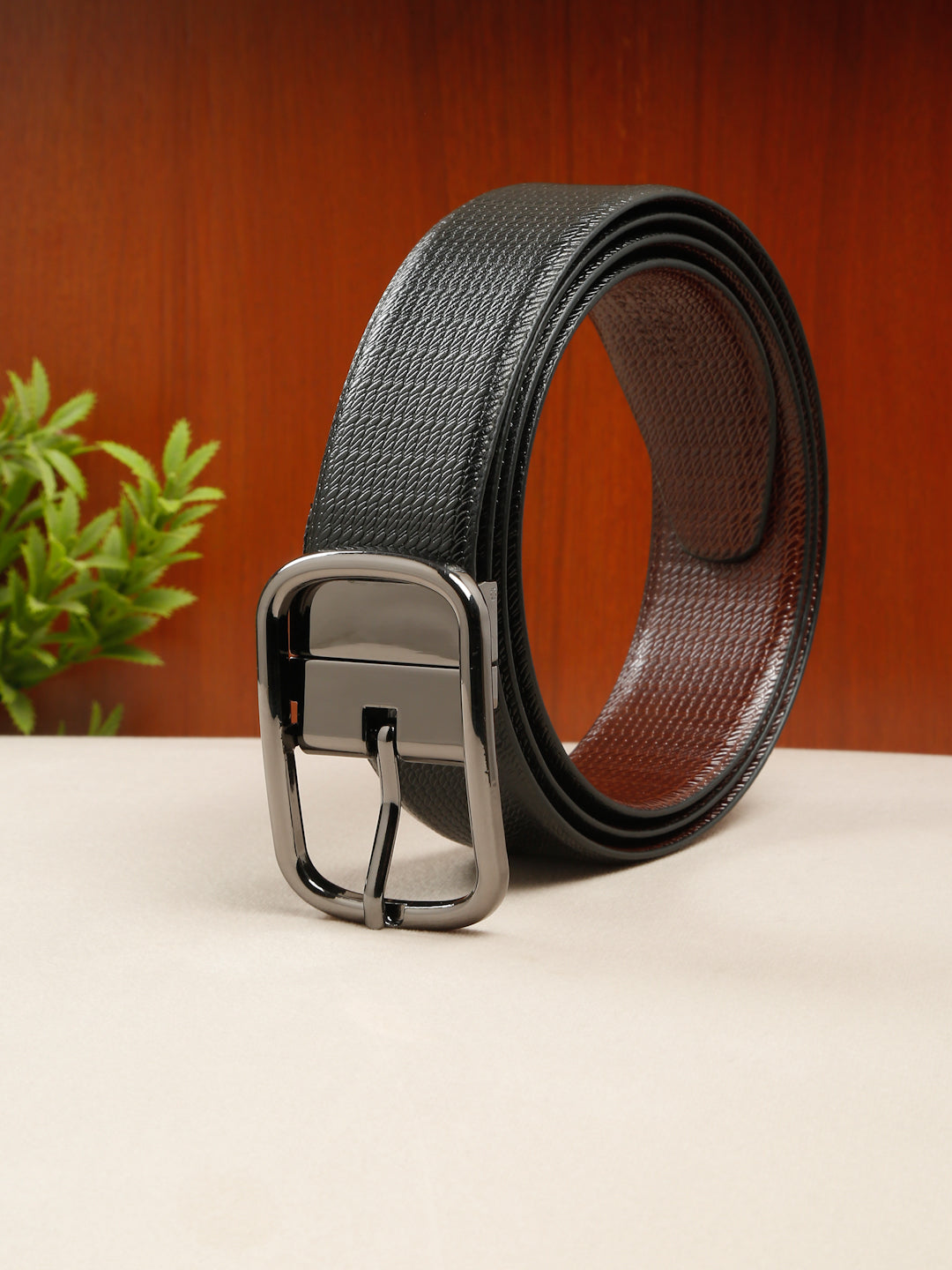 Upgrade your accessory collection with our men's reversible leather belt, featuring our sophisticated men's reversible leather belt, designed for versatility and style. Featuring a unique texture, this belt offers two classic color options, black and brown, making it a perfect accessory for any outfit.