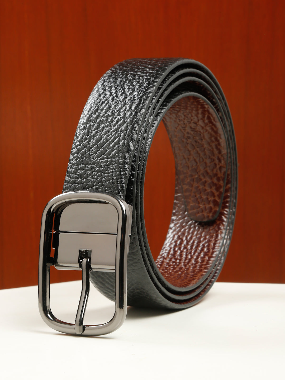 Men's Texture Finish Black & Brown Leather Reversiable Belt