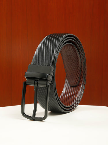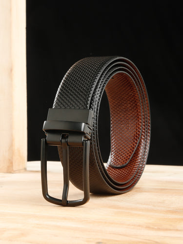 Men's Texture Finish Black & Brown Leather Reversiable Belt