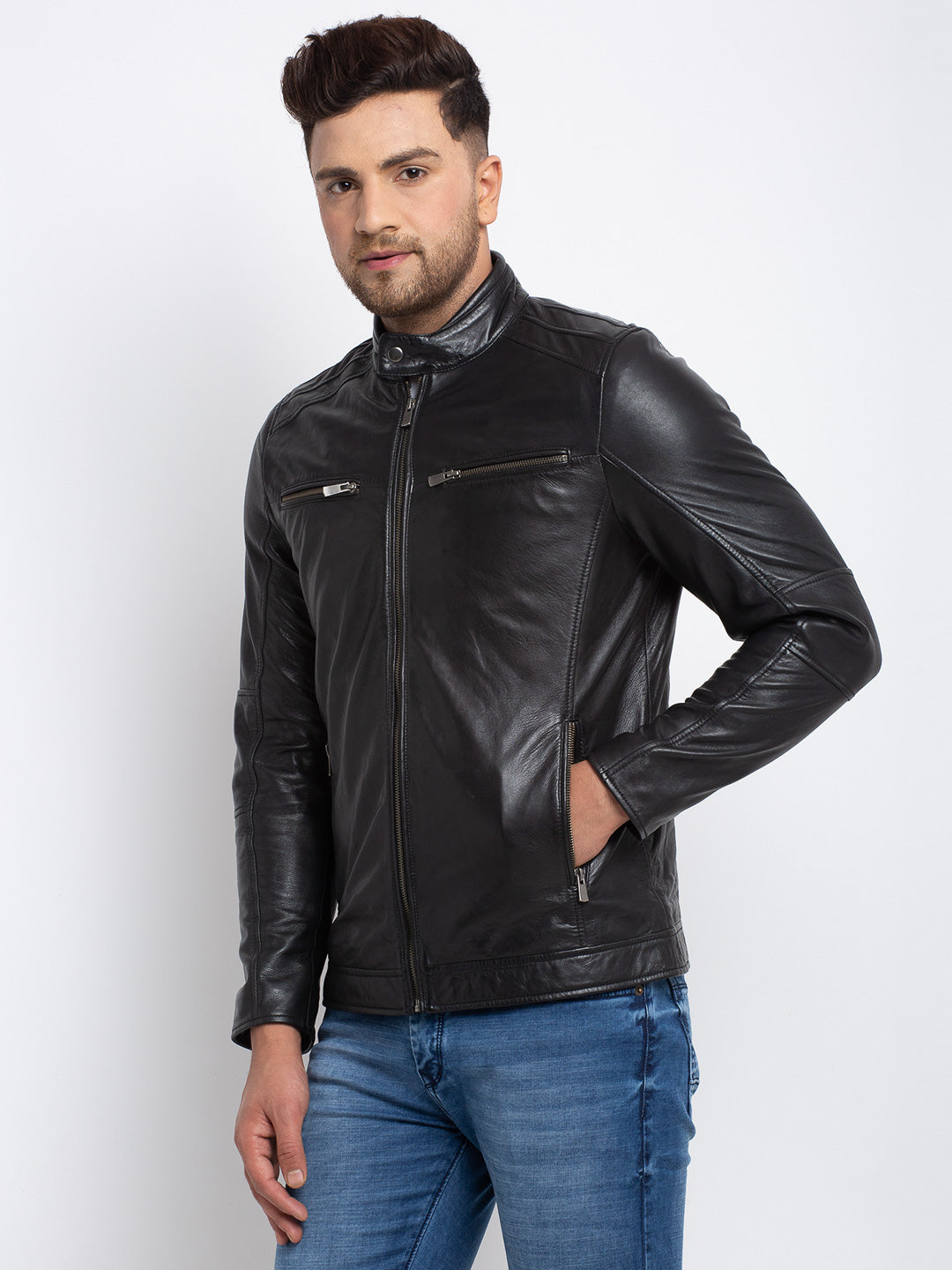 Teakwood Leathers Men's Leather Jacket with Full Sleeves offers comfort with style. Made with high-quality material of Original Leather and superior stitching for excellent fit, comfort and a stylish look. It's naturally very lightweight