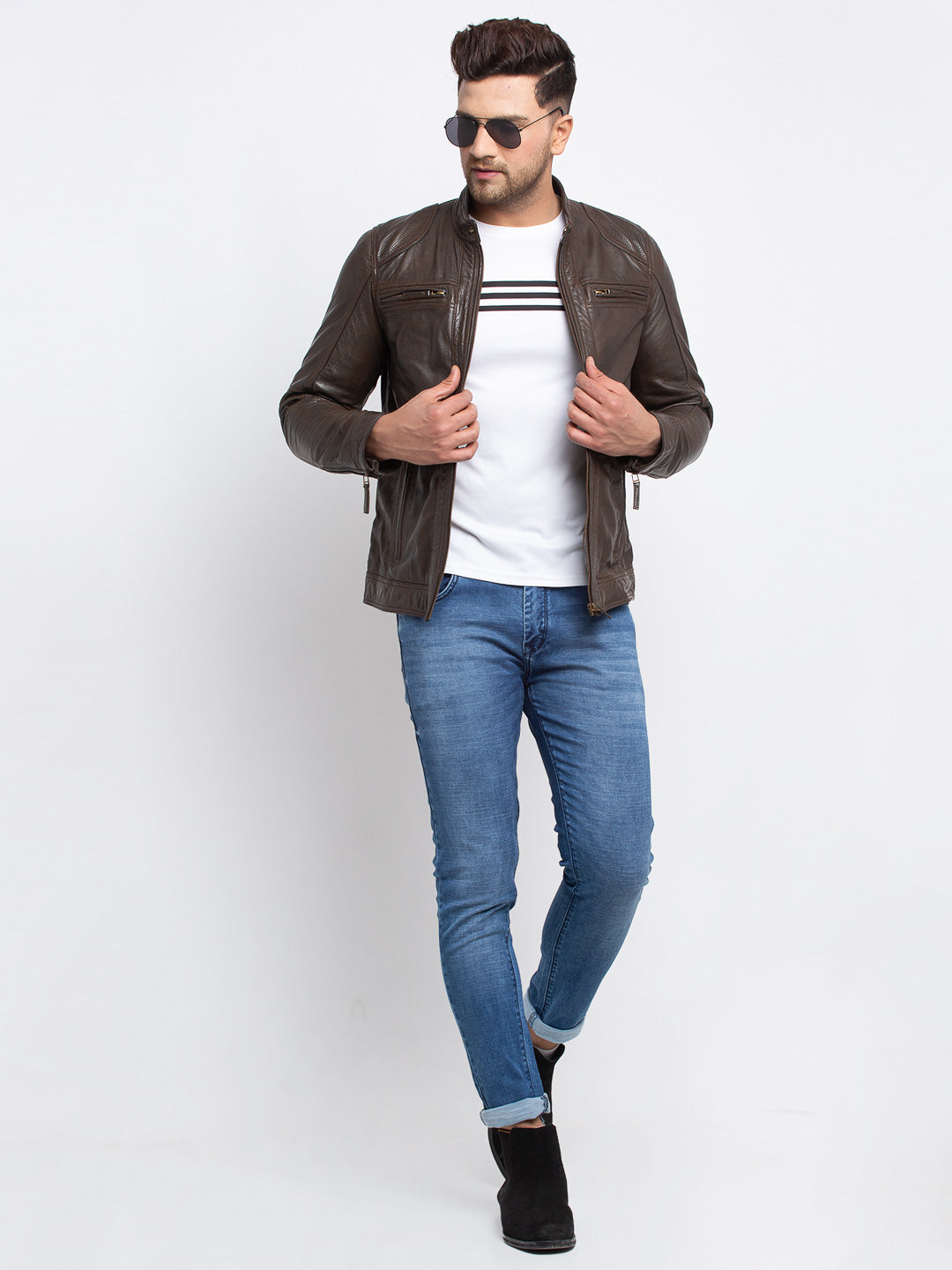Teakwood Leathers Men's Leather Jacket with Full Sleeves offers comfort with style. Made with high-quality material of Original Leather and superior stitching for excellent fit, comfort and a stylish look. It's naturally very lightweight