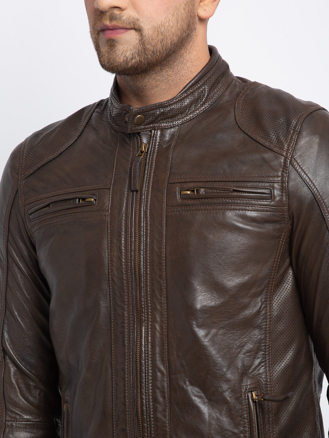 Teakwood Leathers  Men's 100% Genuine Brown Leather Jacket