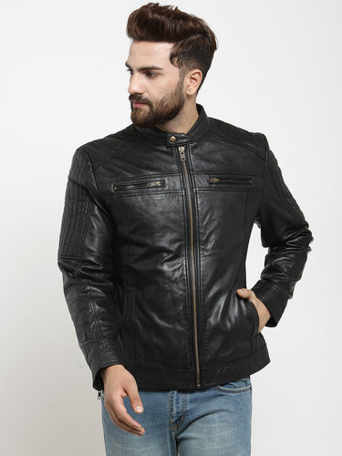 Teakwood Leathers Black Men's 100% Genuine Leather Jacket