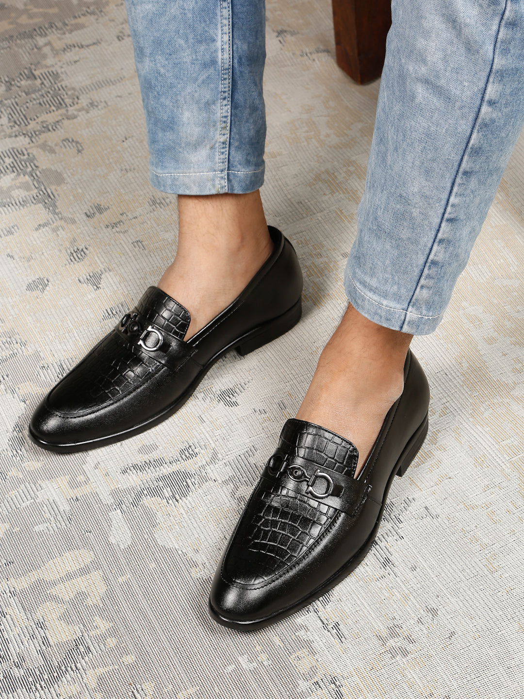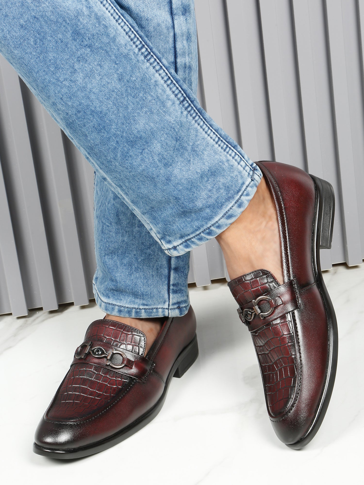 Men Croco Embossed Leather Loafer Shoes