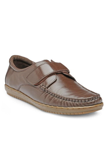Men Brown Solid Leather Round Toe Formal Slip-Ons