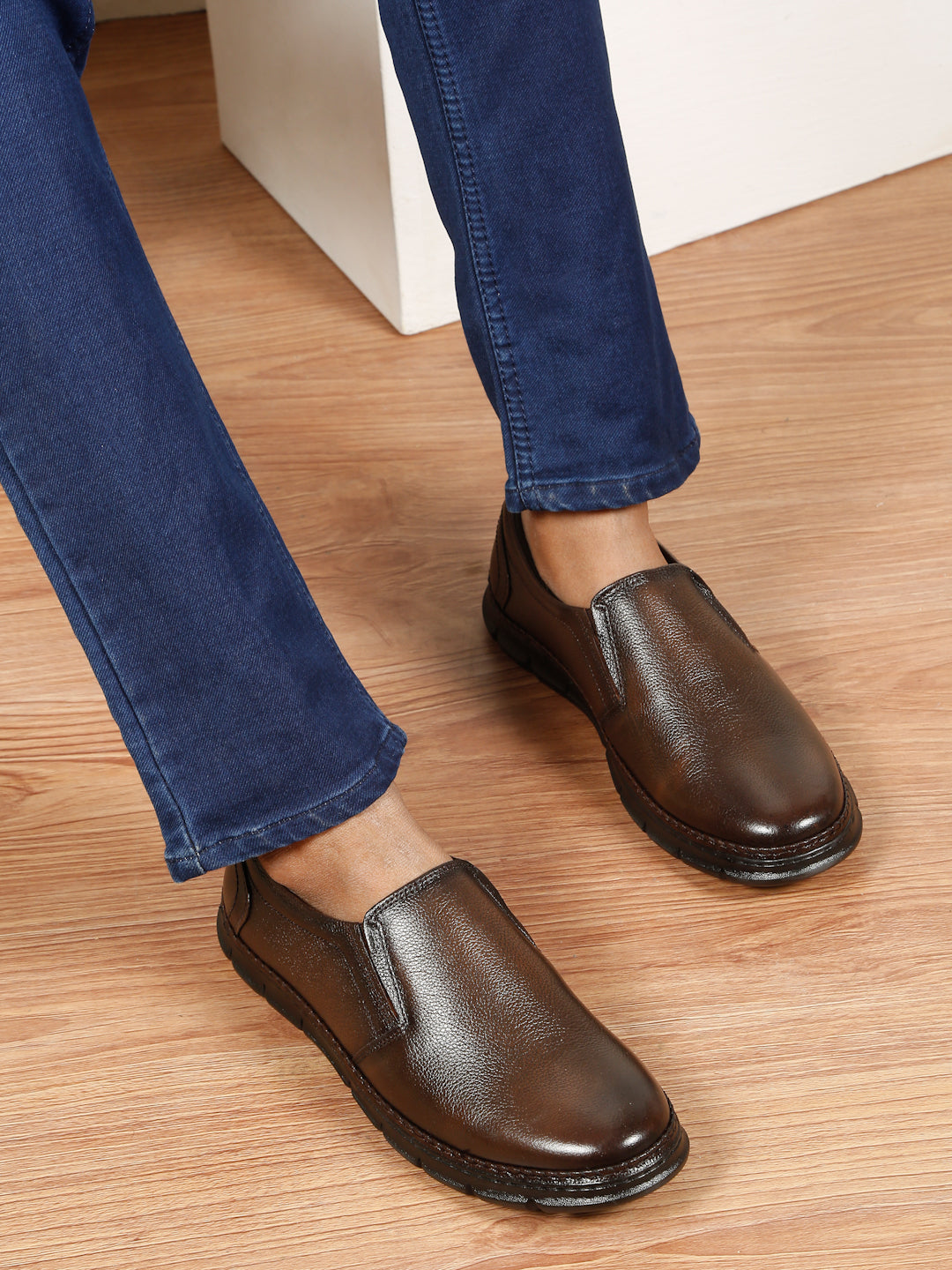 Redefine everyday sophistication with the Teakwood Leather Men’ Tan Leather Loafers, thoughtfully slip-on designed for style, durability, and comfort with round toe. The EVA cushioned insole ensures maximum comfort and shock absorption, making these shoes perfect for long hours of wear — whether at work, meetings, or formal gatherings. Complementing this comfort is the rubber sole, engineered for superior grip, flexibility, and longevity, ensuring confident strides on various surfaces. Ideal for pairing with tailored suits, dress pants, or business-casual outfits, these loafers deliver the perfect mix of polished style and all-day comfort