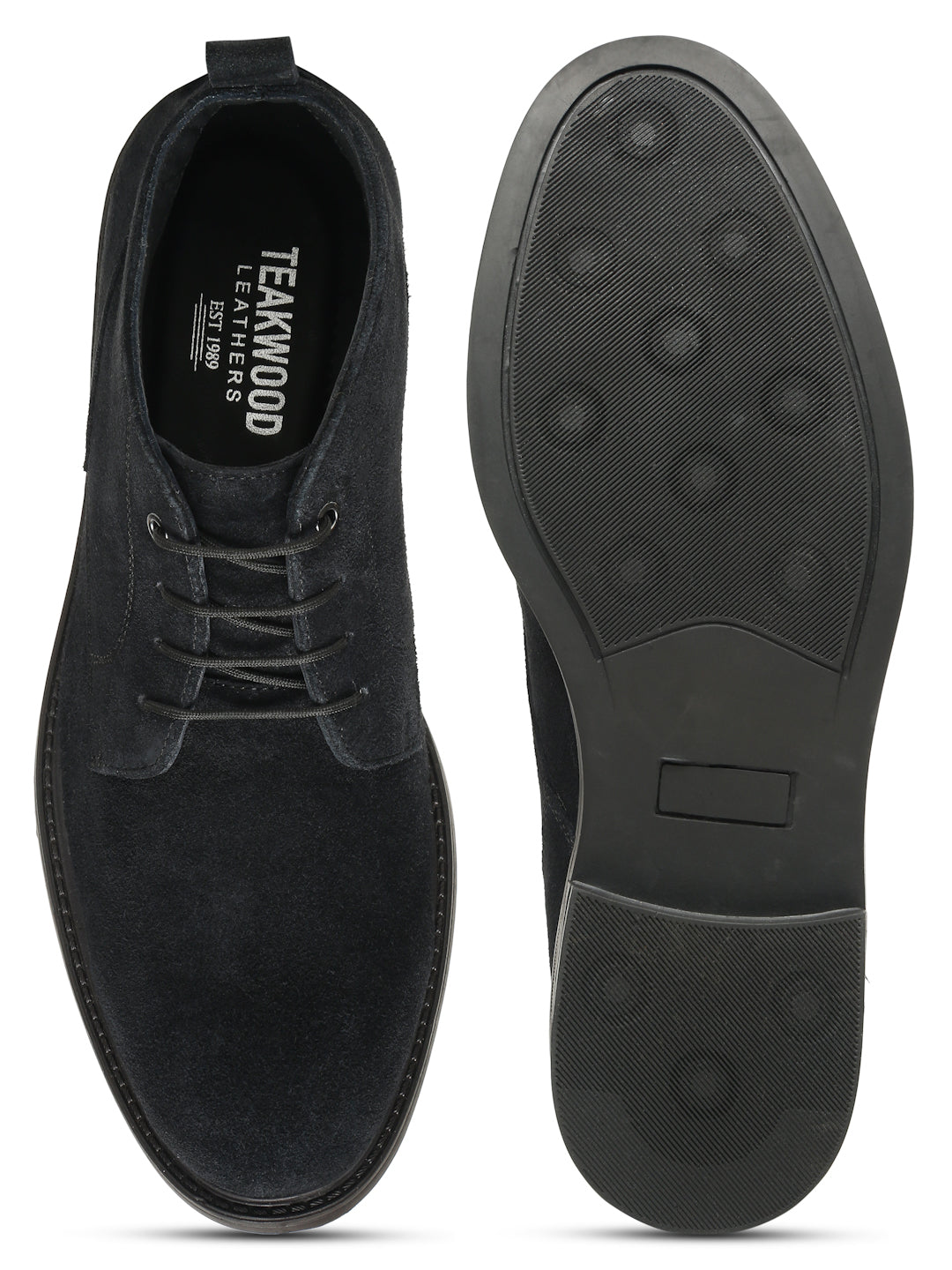 Elevate your smart-casual style with the TEAKWOOD Black Suede Leather Derby Shoes. Crafted from premium suede, these shoes offer a refined matte finish, flexible rubber sole, and The EVA cushioned insole ensures maximum comfort and shock absorption,these shoes are Polished, high-shine surface for a sophisticated formal look.