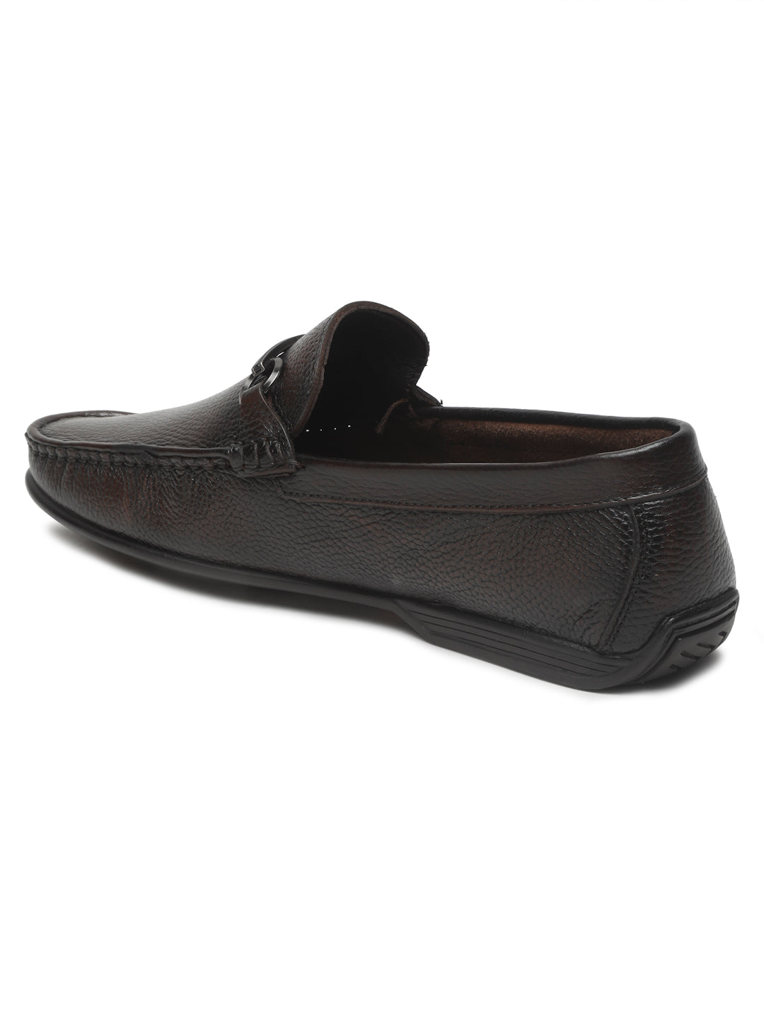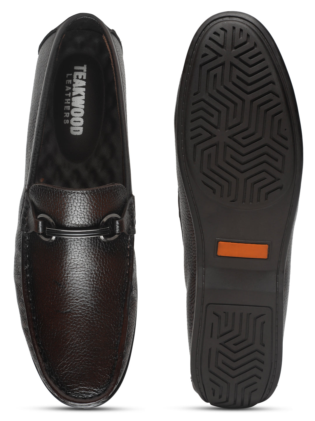 Details: This Teakwood pair of Brown Leather Flexi 360 Loafers has slip-on with buckle details, It has round toed, anti-skid with flexible sole, has Cushioned footbed for extra comfort and highly flexible.