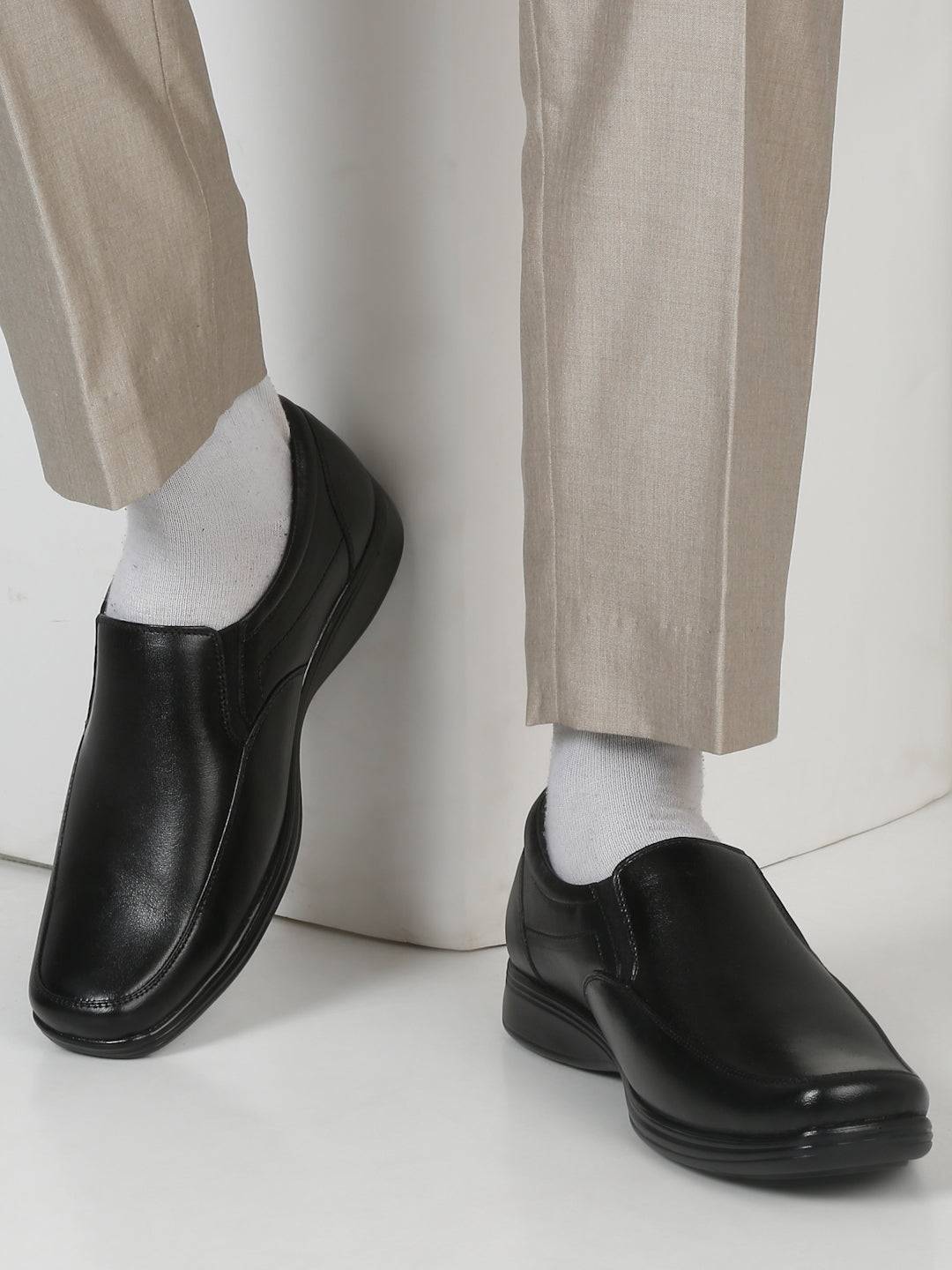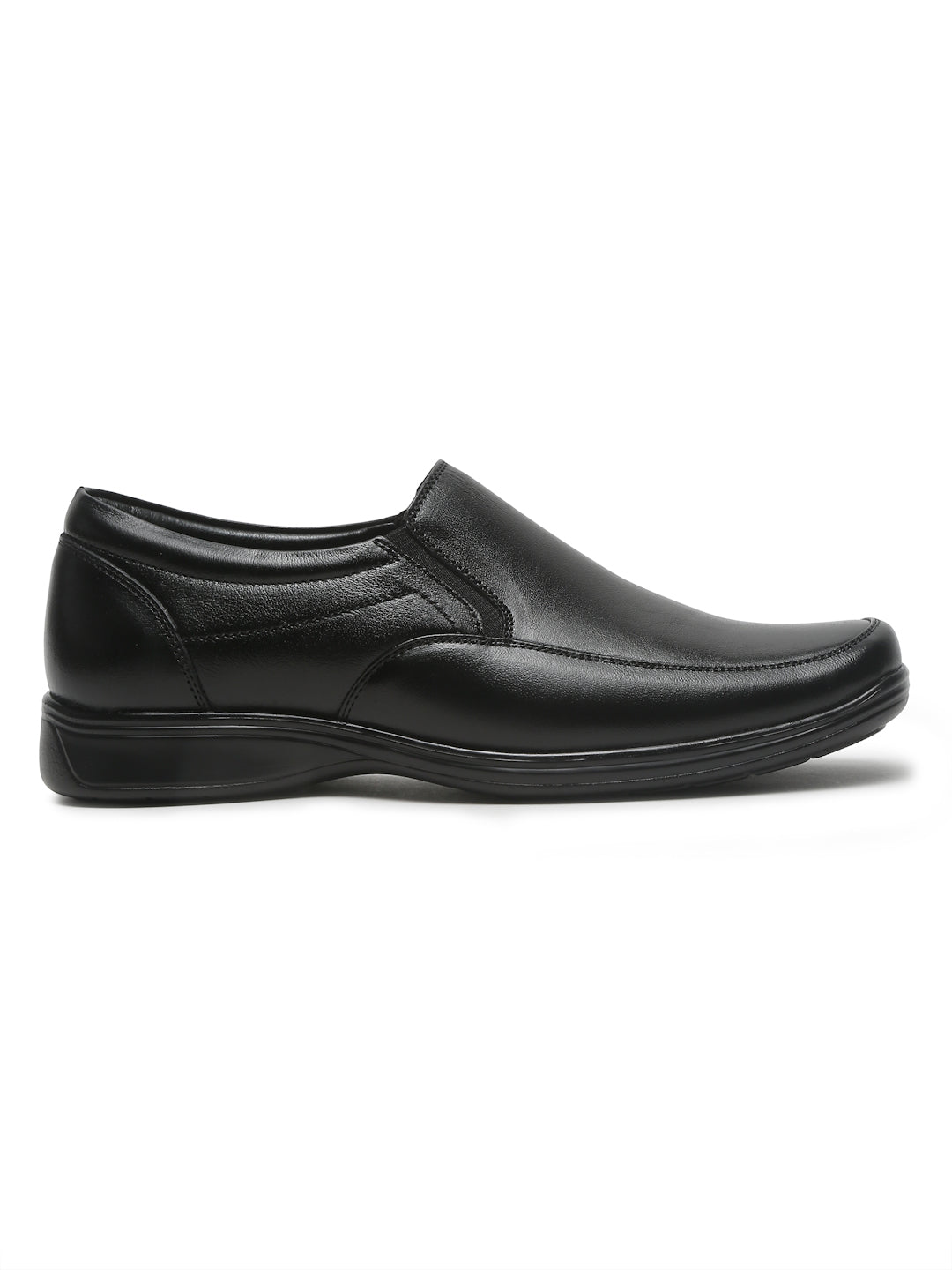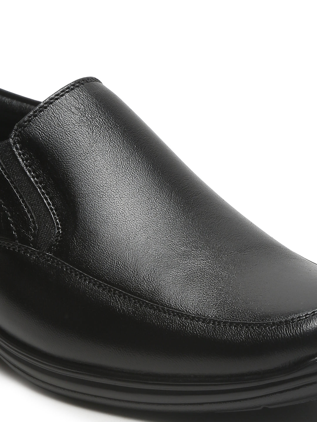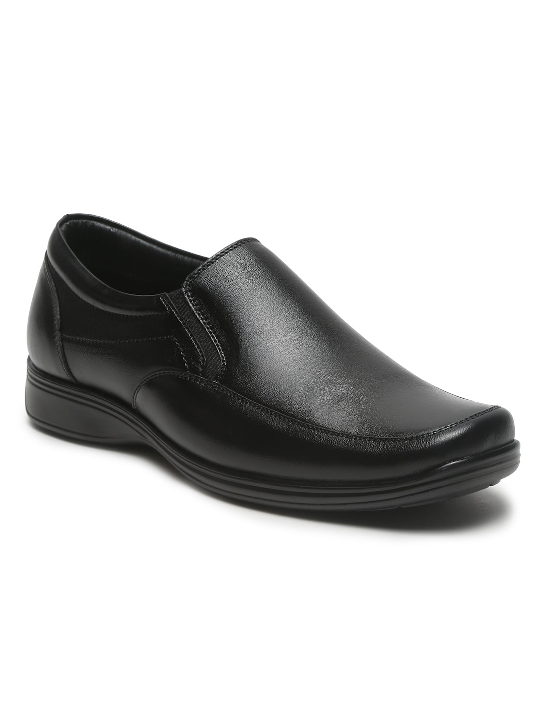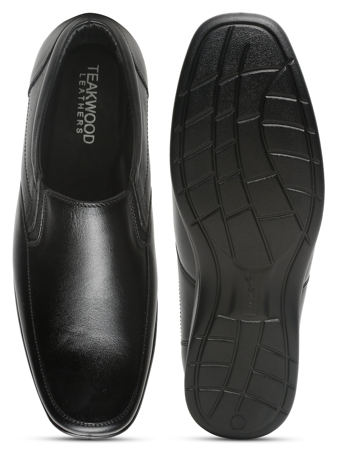 Details: This Teakwood pair of black Leather Moccasins has slip-on, It has Round toe, anti-skid with patterned TPR sole, has Cushioned footbed for extra comfort, highly flexible.