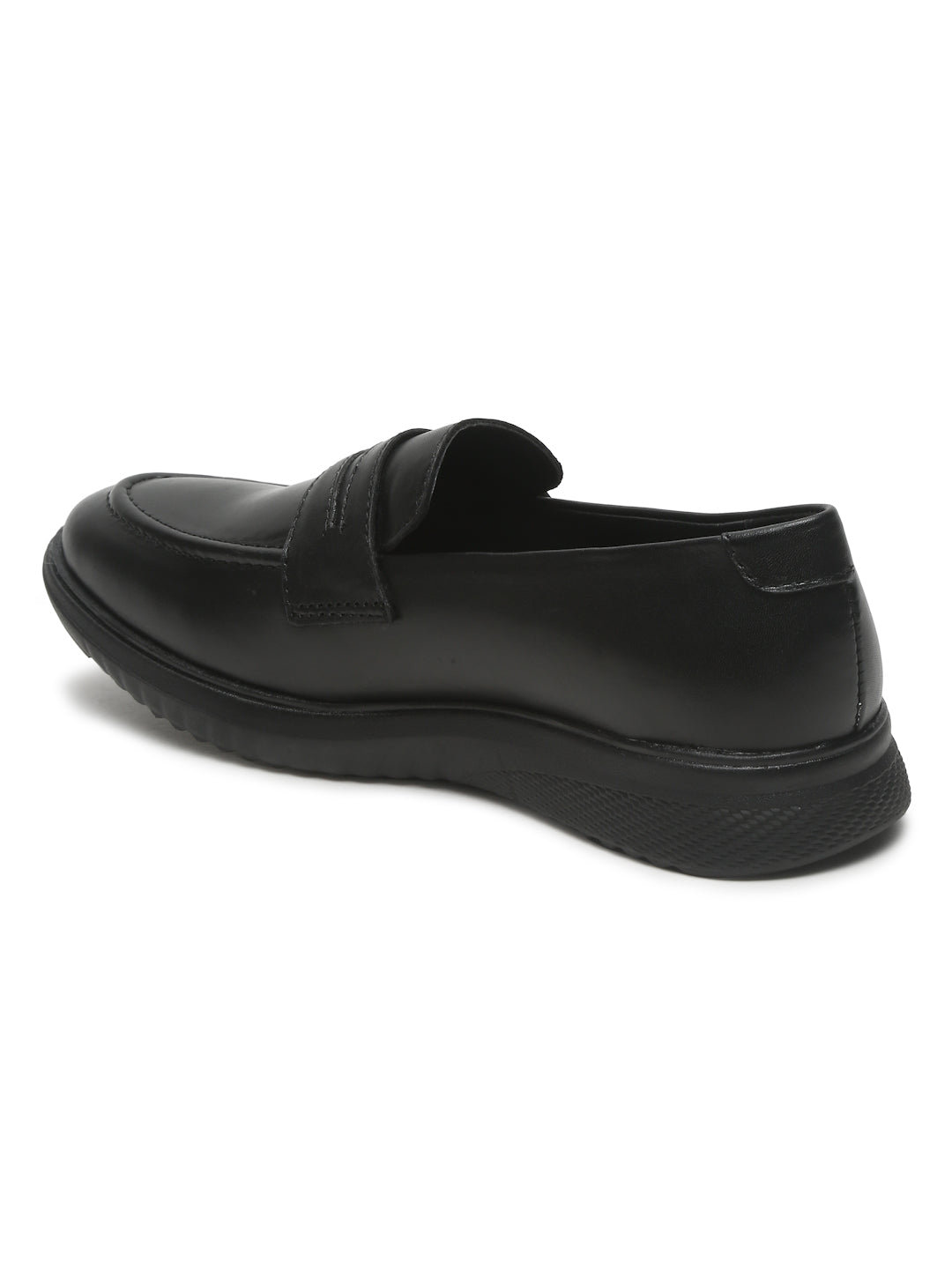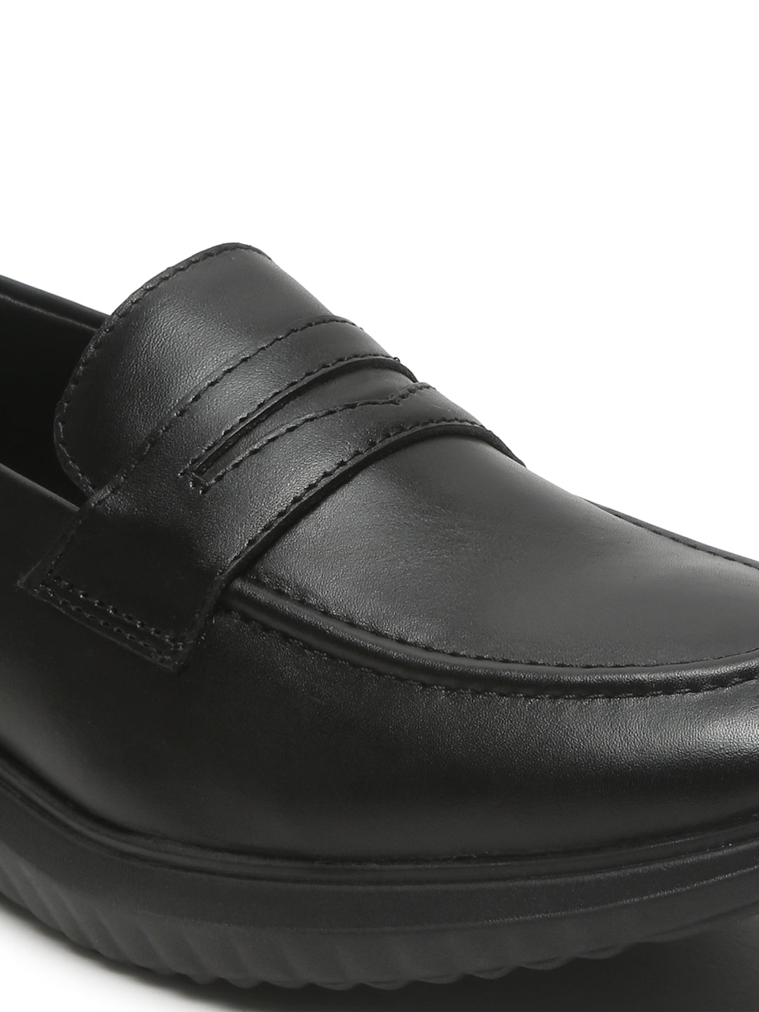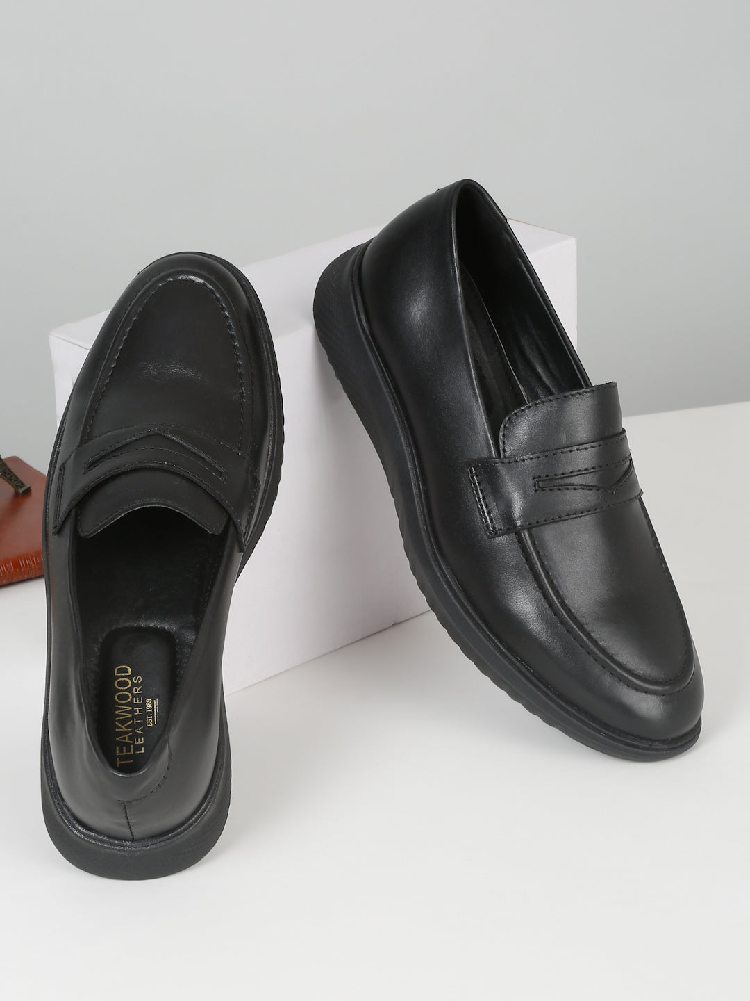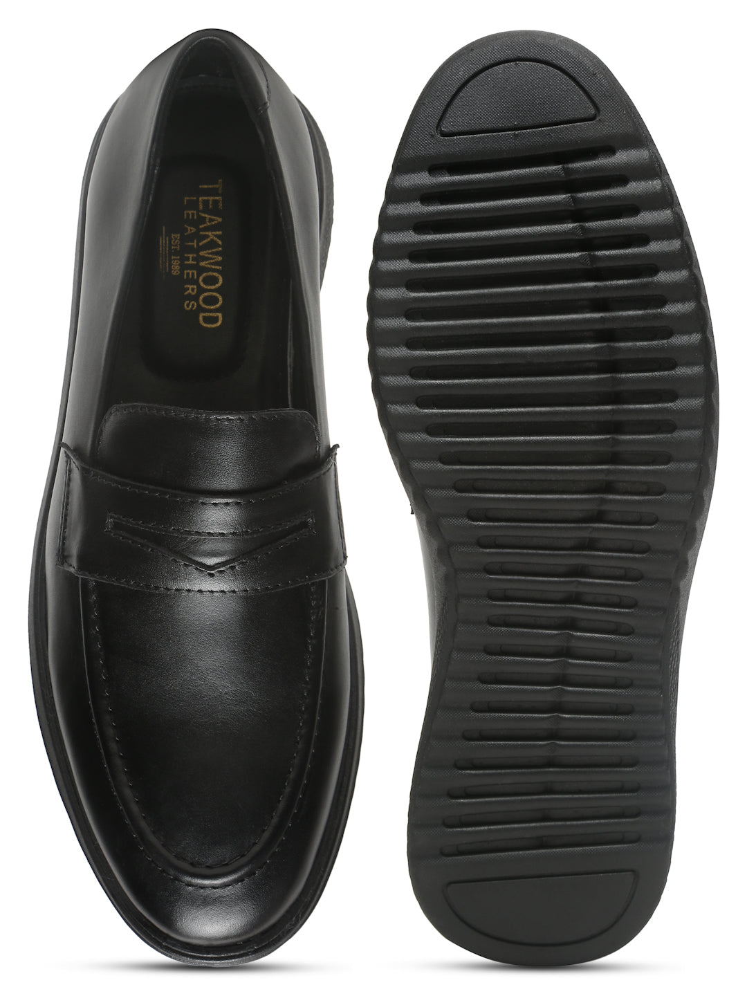 This Teakwood pair of black solid Leather loafers has slip-on, It has round toe, anti-skid with TPR sole, has Cushioned footbed for extra comfort, highly flexible and comfortable.