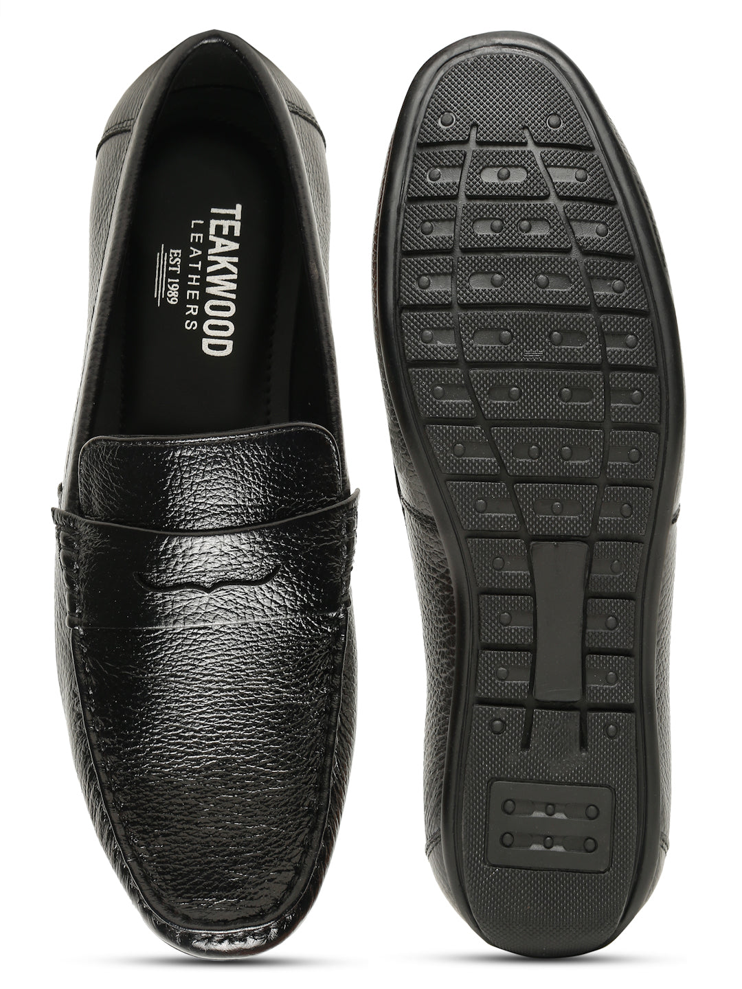 Expertly crafted from high-quality genuine leather, this teakwood leather rich black finish and refined texture give these loafers a modern yet timeless appeal. The slip-on design ensures easy wearability, these loafers feature a TPR sole that offers excellent grip, flexibility, and long-lasting durability. The soft inner lining and cushioned footbed enhance comfort, making them ideal for daily wear.
