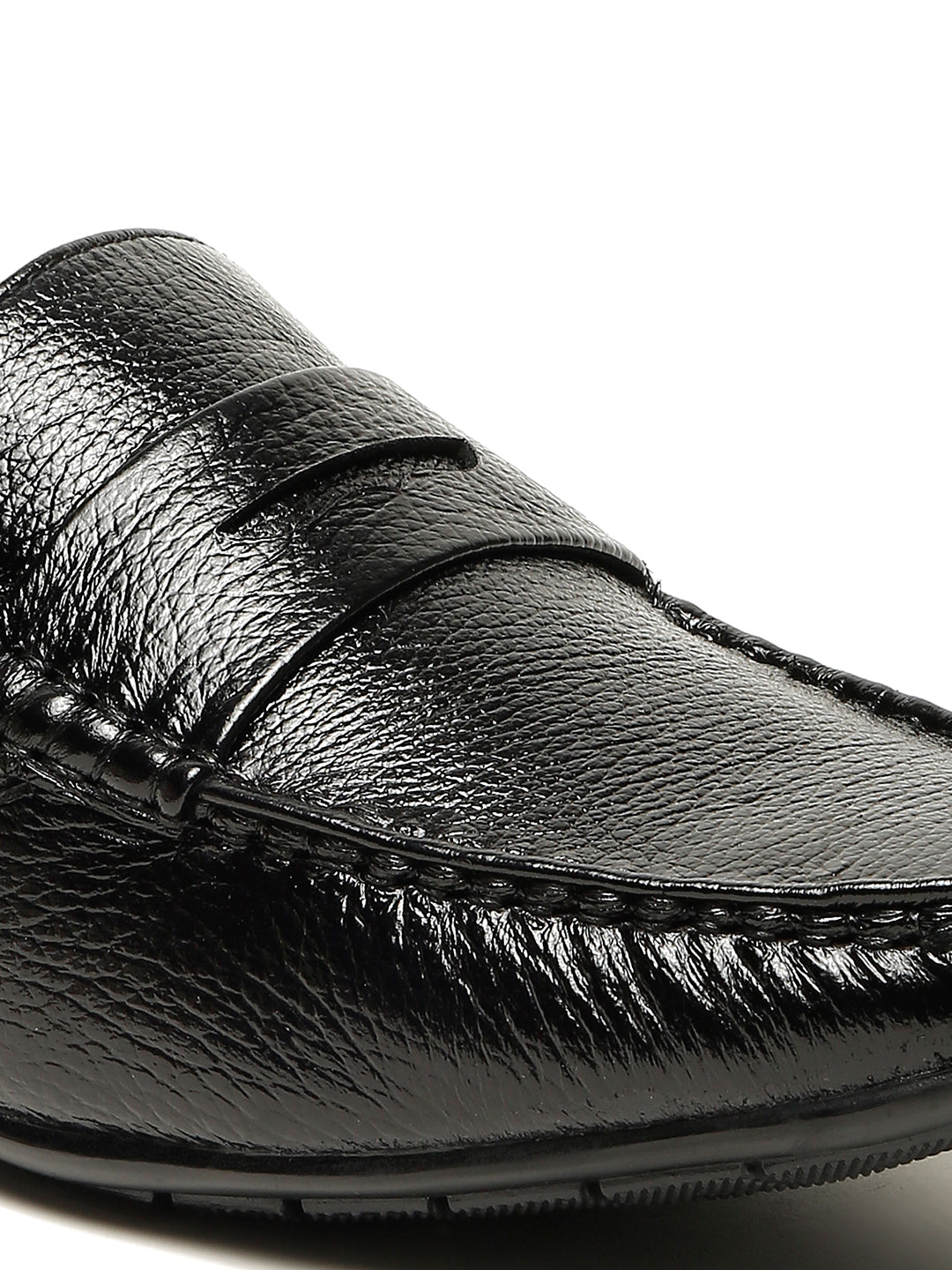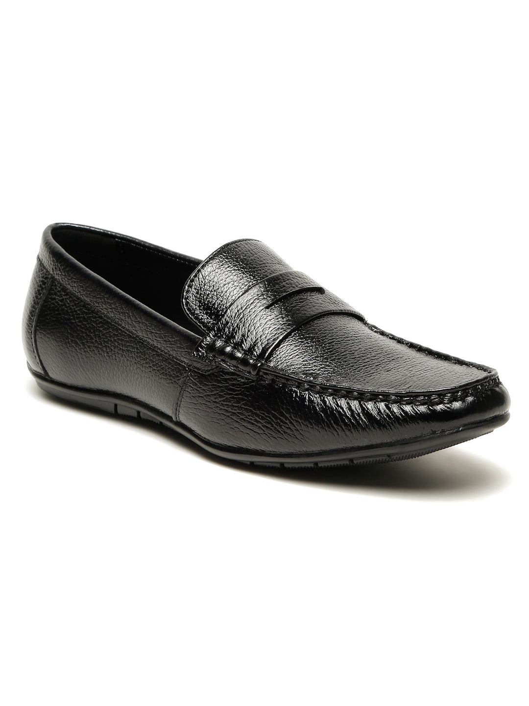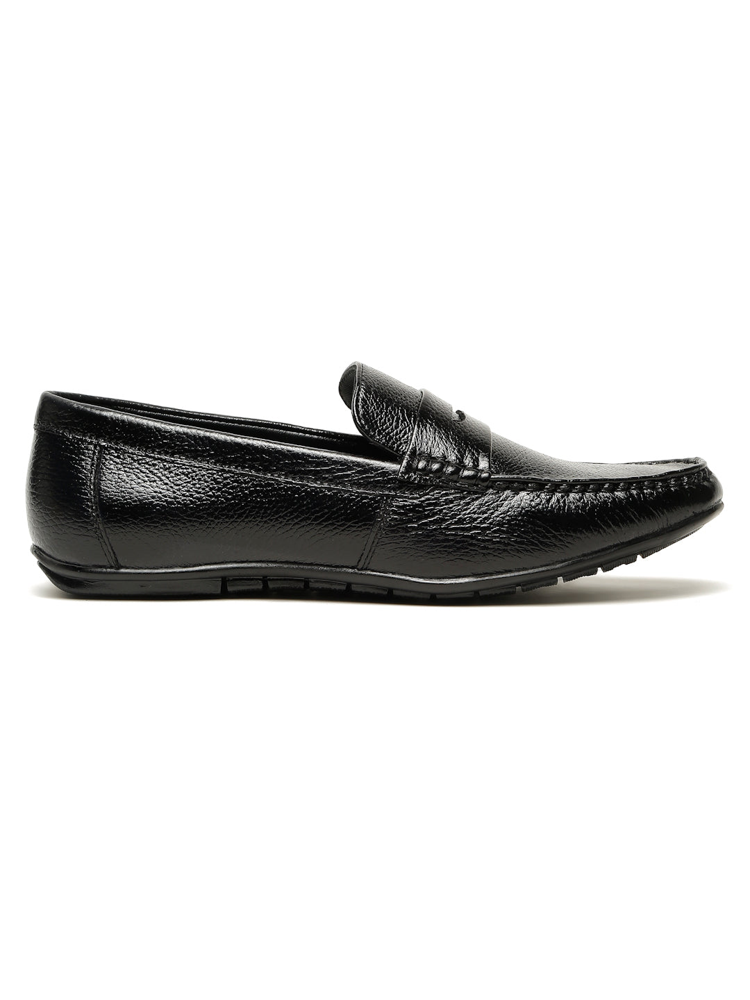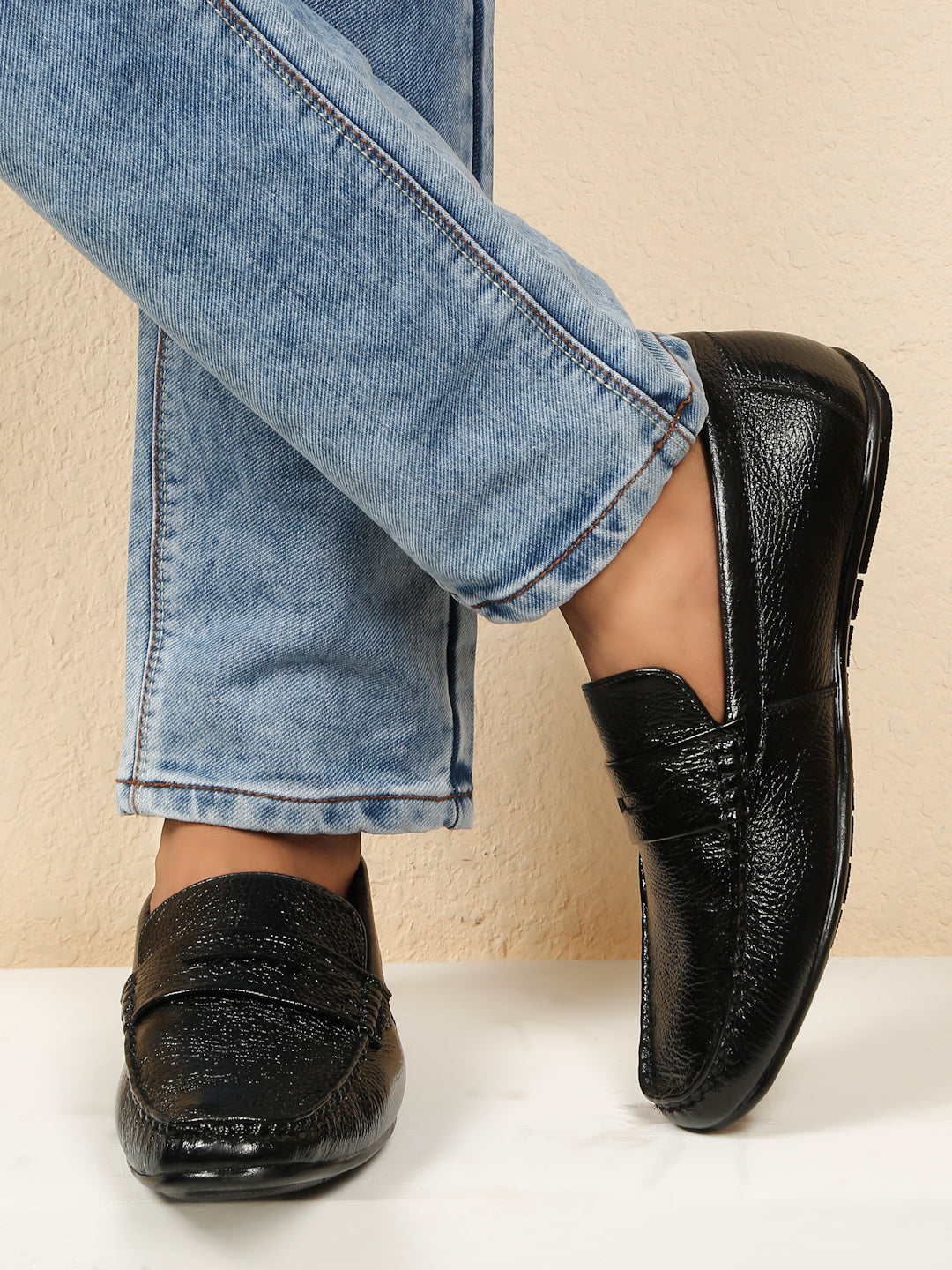 Step into effortless style with these black textured leather loafers from Teakwood Leathers. Whether paired with chinos, trousers, or denim, these loafers elevate your everyday wardrobe with understated elegance and functional design, makes them perfect for both formal and semi-casual occasions.