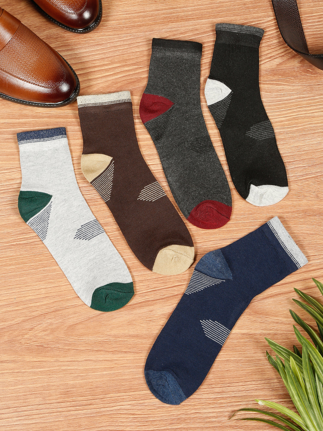 Teakwood Leathers Men's Black Brown Grey Navy Dark Grey Pack Of 5 Cotton Above Ankle Length Socks