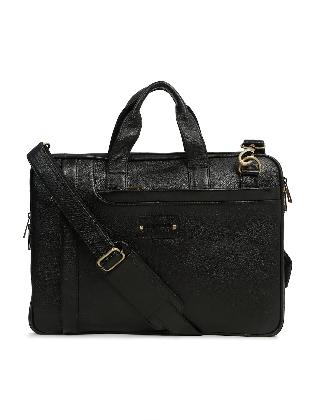 - PRODUCT DETAILS: Introducing our Unisex Black Leather laptop Bag, With one spacious main compartments, two external zip pockets and you'll find one internal stash pockets,and a laptop compartment, perfect for keeping your smaller items neatly organized. It comes with two sturdy handles for handheld or arm-carrying. Plus, the detachable and adjustable sling strap lets you wear it comfortably as a crossbody or shoulder bag, offering hands-free flexibility.