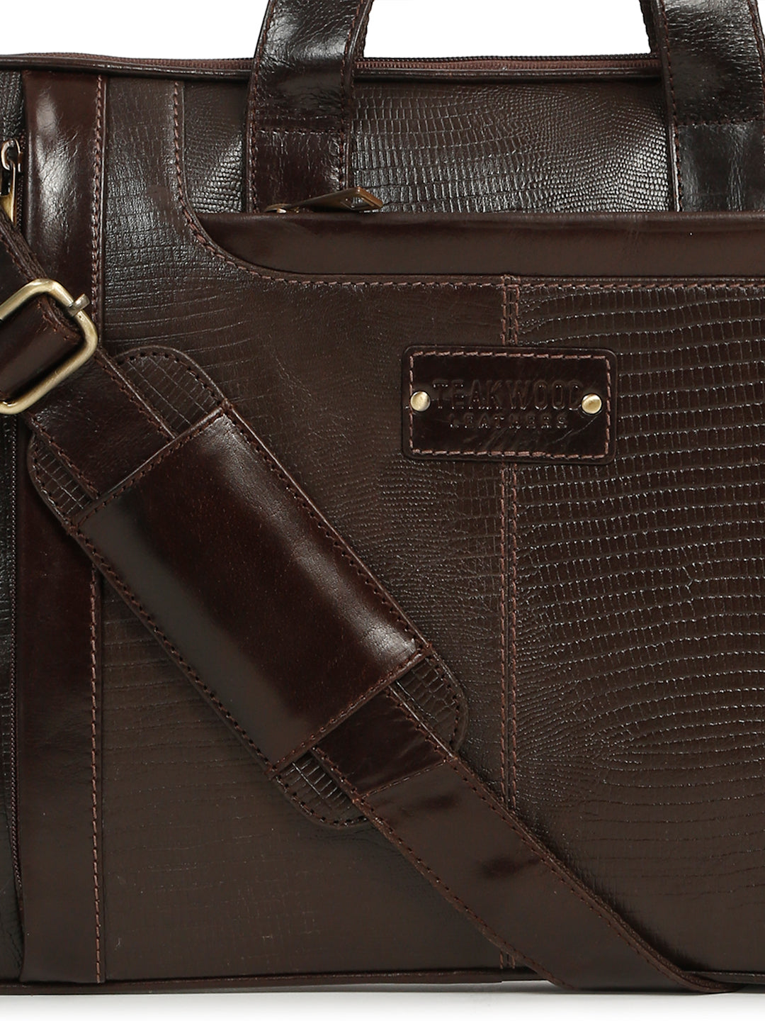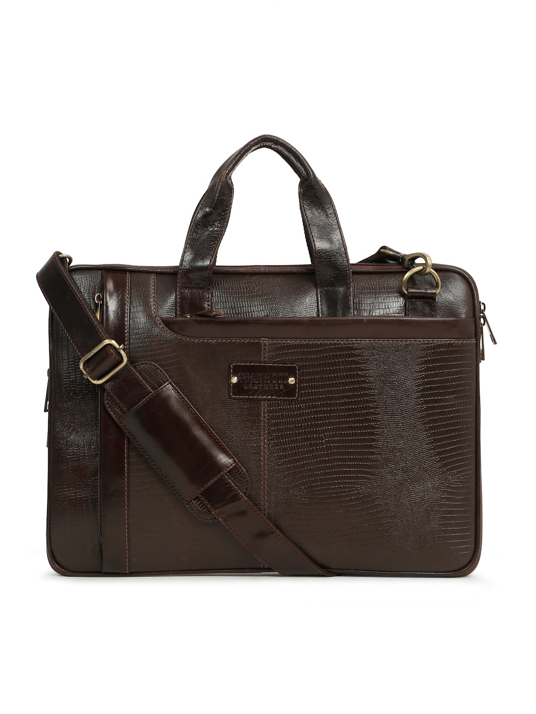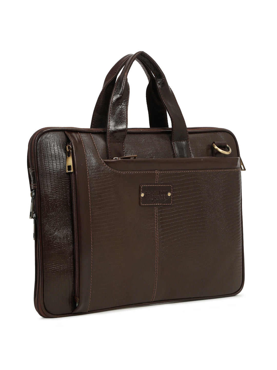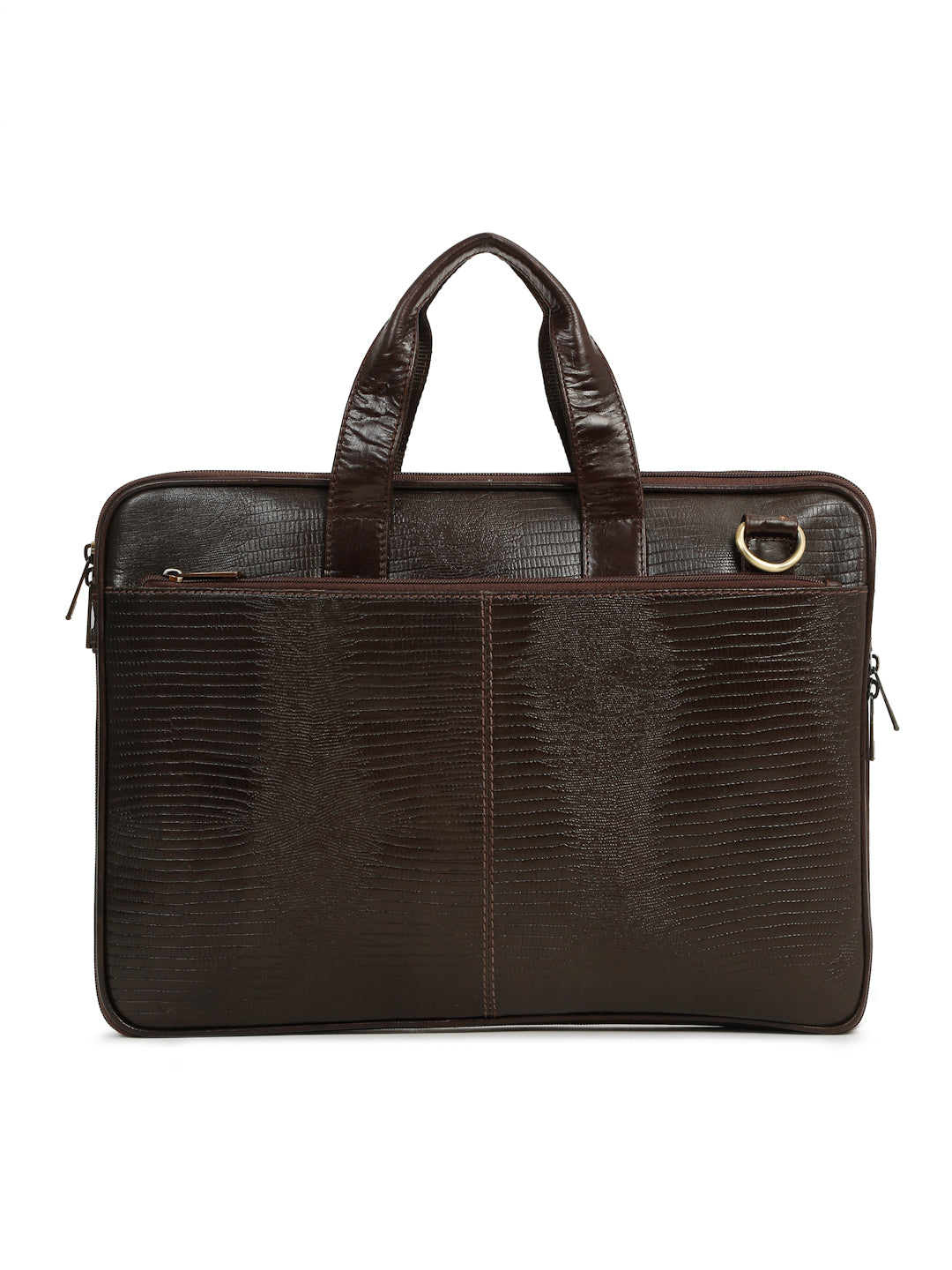 - PRODUCT DETAILS: Introducing our Unisex brownLizard Leather laptop Bag, this bag features a captivating in vibrant brown color. With one spacious main compartments, two external zip pockets and you'll find one internal stash pockets,and a laptop compartment, perfect for keeping your smaller items neatly organized. It comes with two sturdy handles for handheld or arm-carrying. Plus, the detachable and adjustable sling strap lets you wear it comfortably as a crossbody or shoulder bag, offering hands-free flexibility.