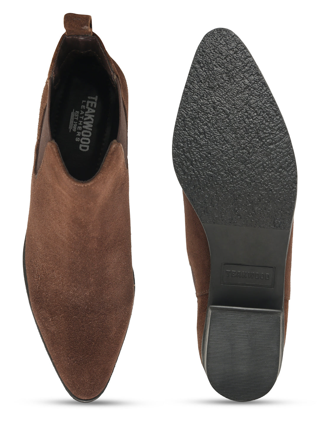 These Teakwood suede Suede Chelsea Boots are a must-have addition to your footwear rotation it has Elegant matte finish for a luxurious feel, Have Comfortable cushioned insole and breathable lining, outsole is made from rubber that have good durability and ensures long-lasting wear,Easy slip-on design with flexible side gussets