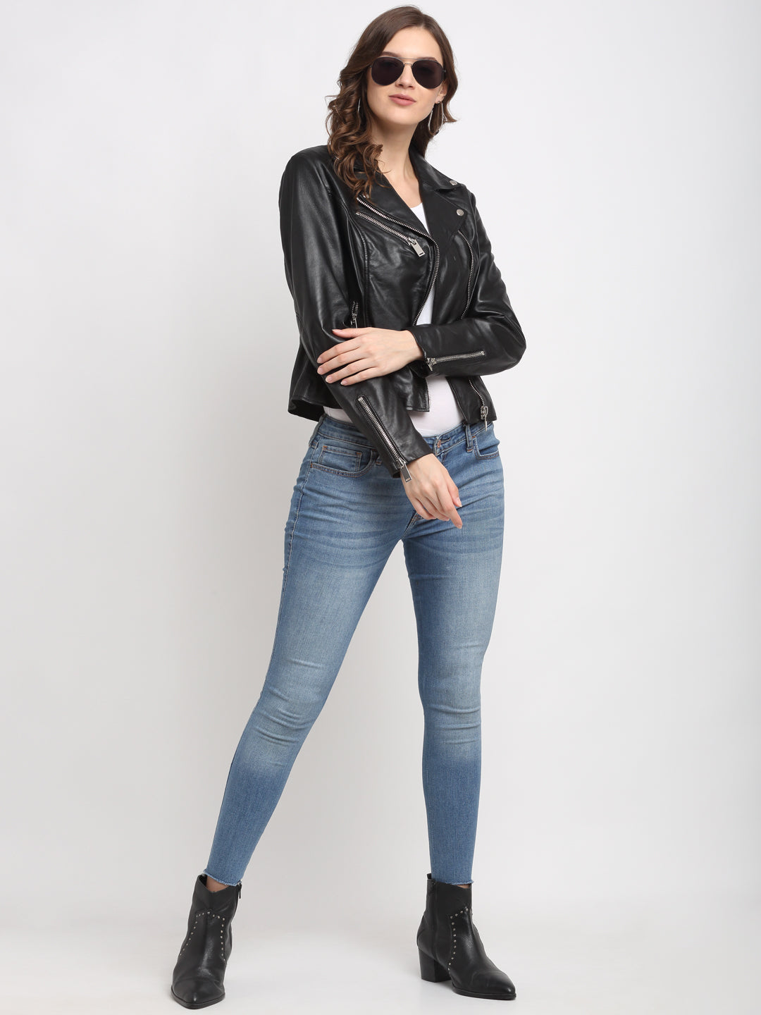 Teakwood Leathers Women's Leather Jacket with Full Sleeves offers comfort with style. Made with high-quality material of Original Leather and superior stitching for excellent fit, comfort and a stylish look. It's naturally very lightweight