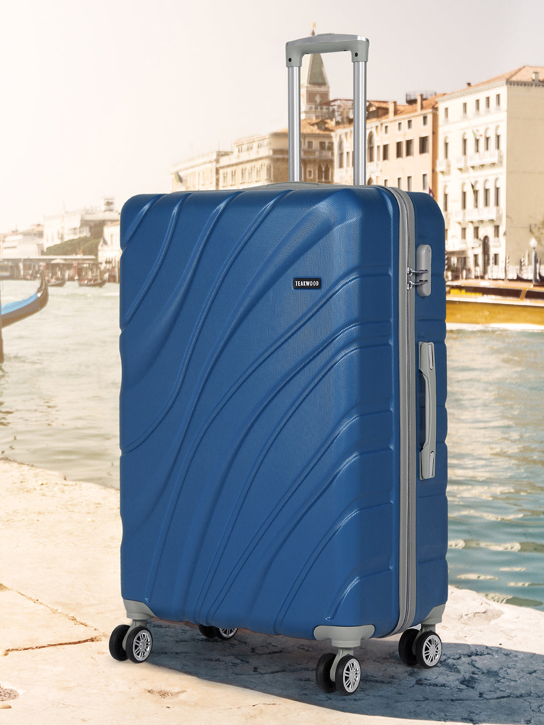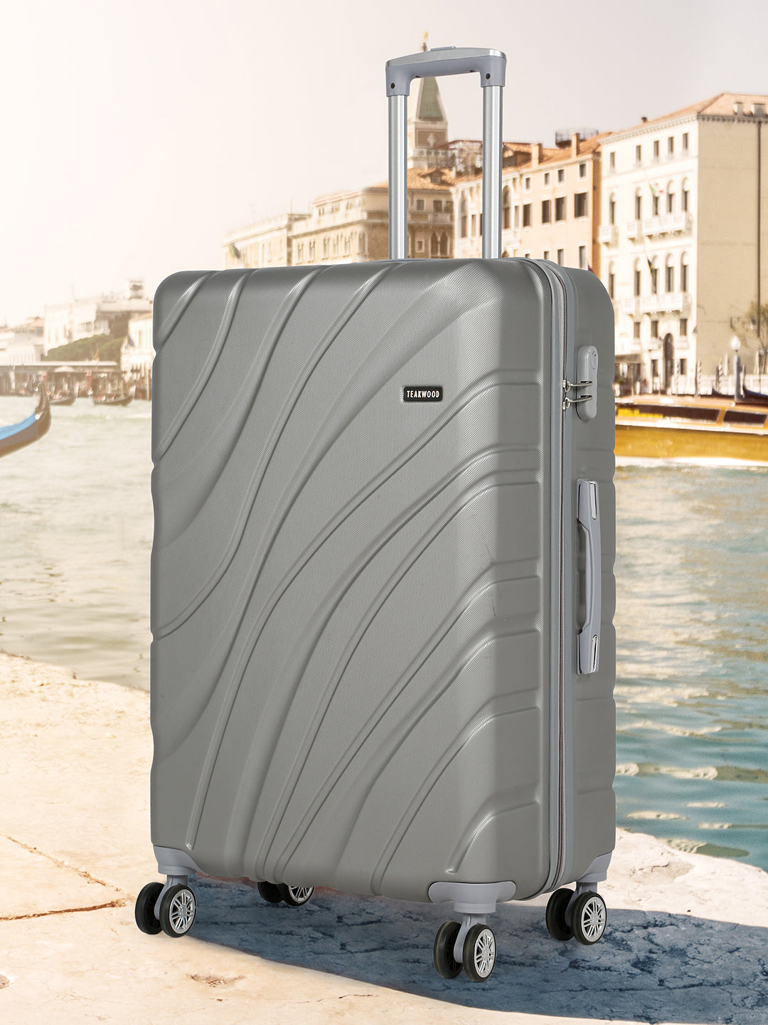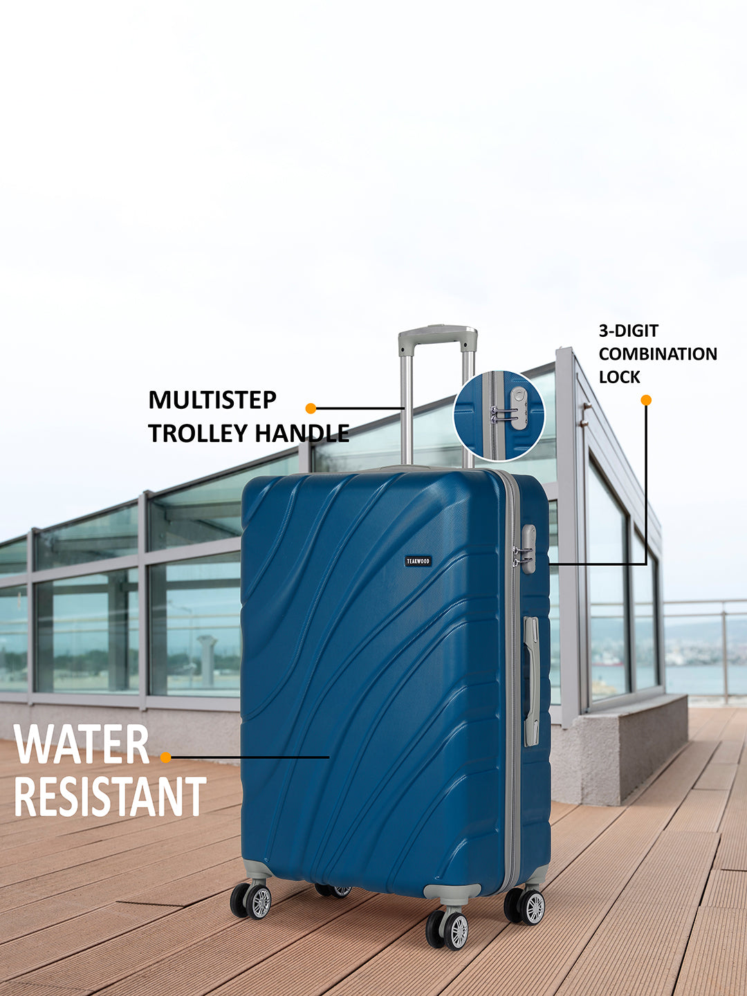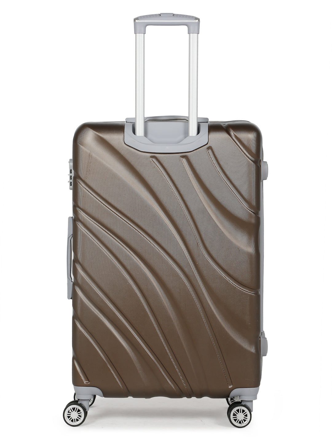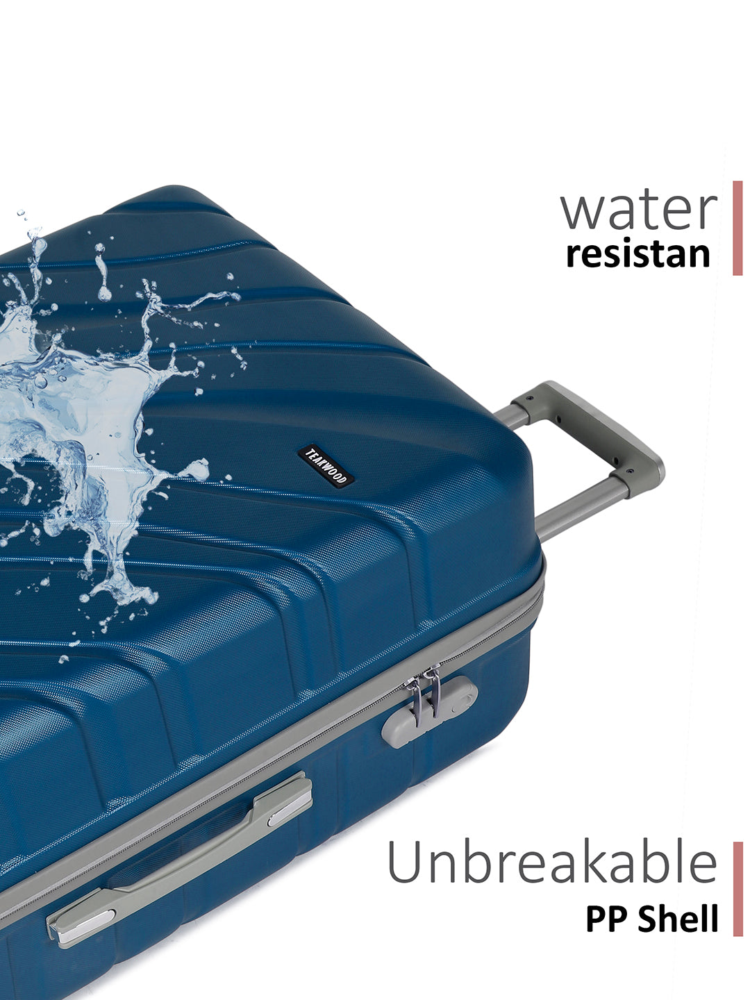 PRODUCT DETAILS: This Teakwood textured hard-sided cabin-sized trolley bag secured with a number lock One handle on the top and a retractable handle on the top Eight 360-degree rotatable corner-mounted skate wheels One main zip compartment Zip lining with two compression straps Has a sub-compartment, secured with a zip closure Warranty: 2 Years Warranty provided by brand/manufacturer