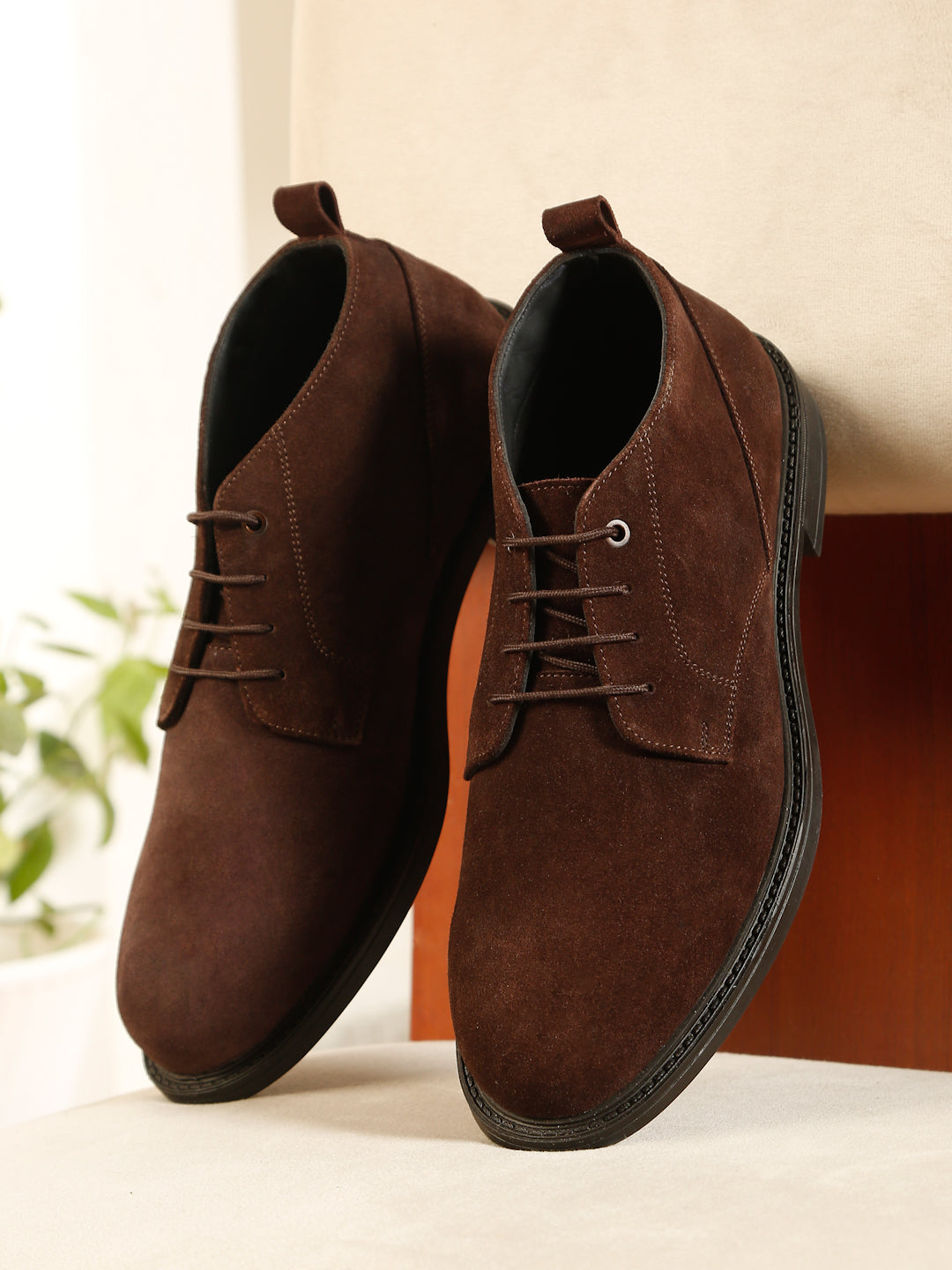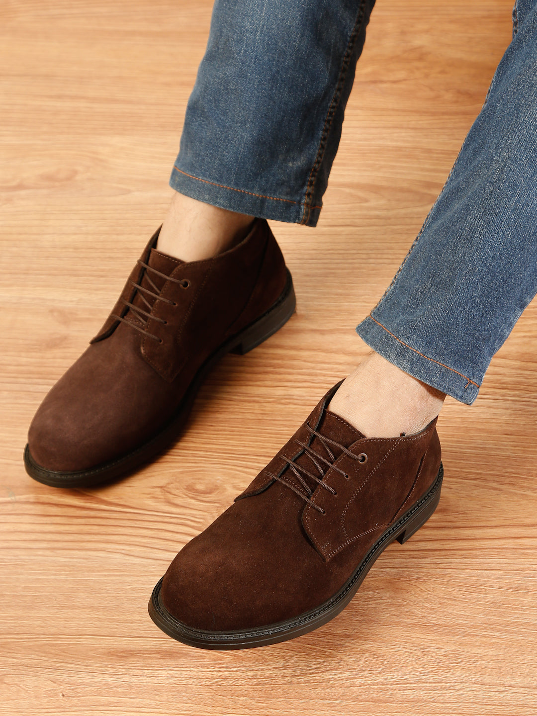 Elevate your smart-casual style with the TEAKWOOD brown Suede Leather Derby Shoes. Crafted from premium suede, these shoes offer a refined matte finish, flexible rubber sole, and The EVA cushioned insole ensures maximum comfort and shock absorption,these shoes are Polished, high-shine surface for a sophisticated formal look.