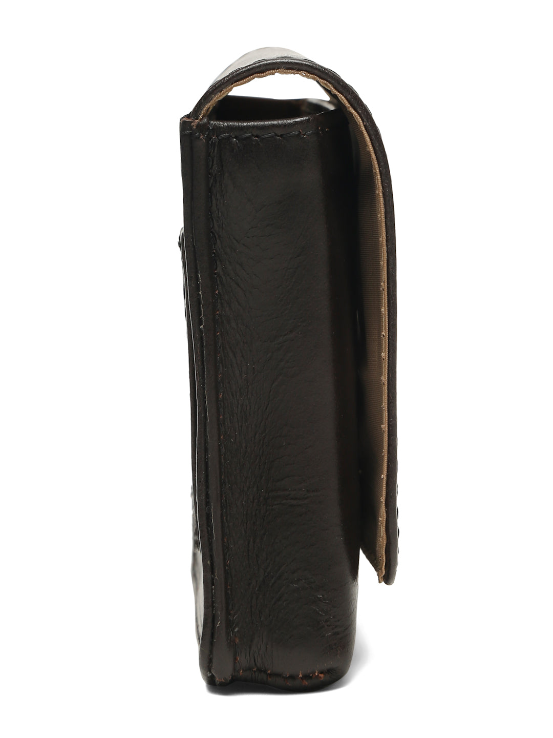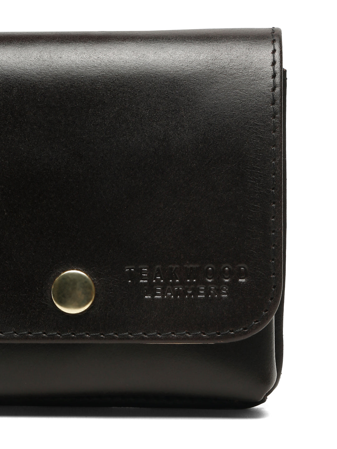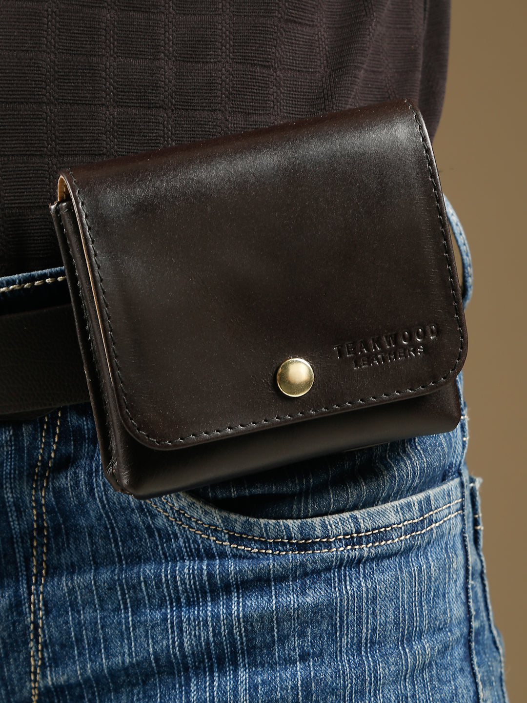 Teakwood Leather bag Made from smooth genuine leather in a rich brown shade.Features a minimal and classic rectangular shape.The front flap has neat stitching along the edges for a clean finish It Secured with a gold-tone snap button closure.The pouch is designed to be worn on a belt, as shown attached to jeans.It fits securely at the waist, making it practical and hands-free.Ideal for travel or daily use when you need quick access to essentials. you can use to carry card, cash, id card and small document itc, The snap closure keeps items safe and organized.