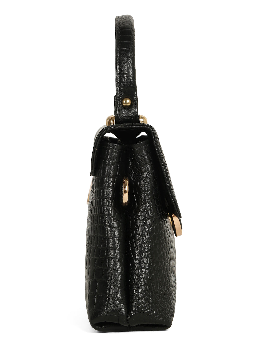 This is an elegant structured satchel handbag featuring a sophisticated, embossed crocodile texture finish.This handbag is designed for a polished and formal look, suitable for work, evening events, or dressy occasions.