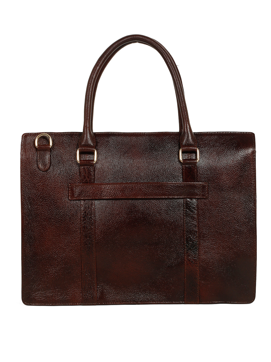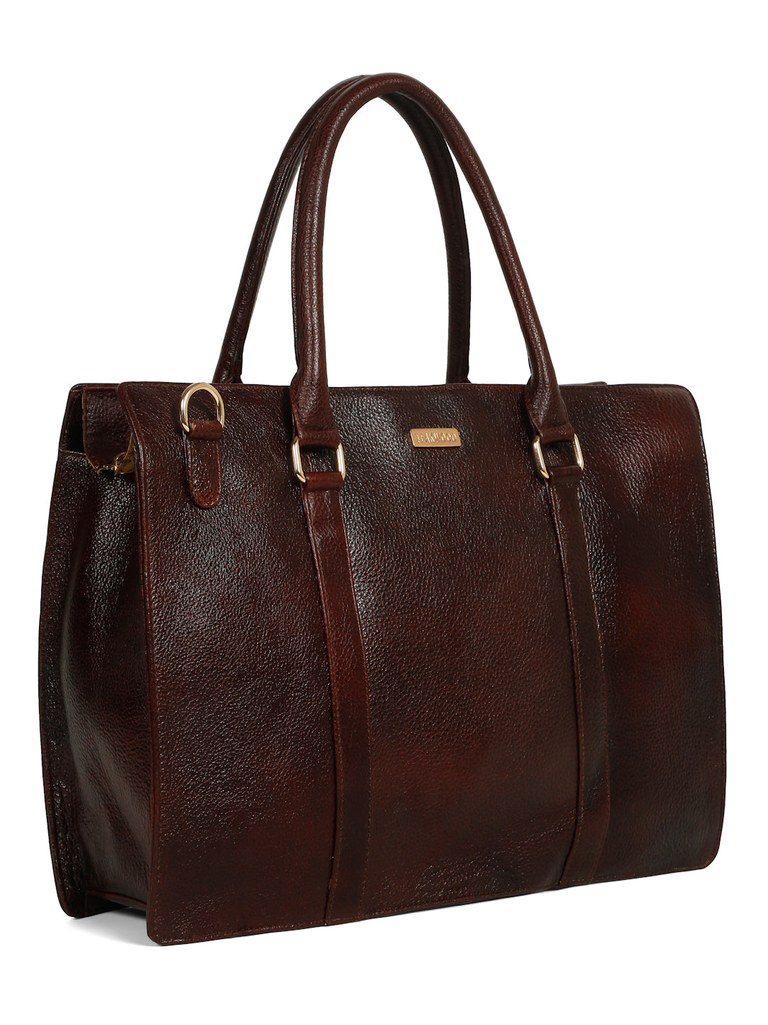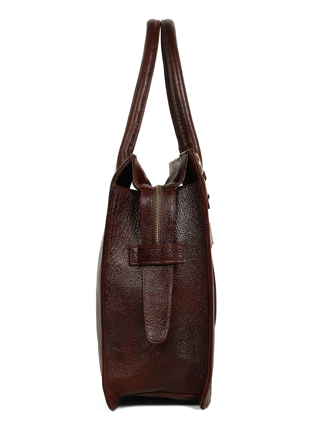 This is a sleek and practical teakwood leather structured tote bag, designed to carry essentials for work or daily life. This bag is ideal for someone needing a chic, durable,A highly structured, rectangular silhouette suitable for professional and spacious bag for office use, school, or travel.