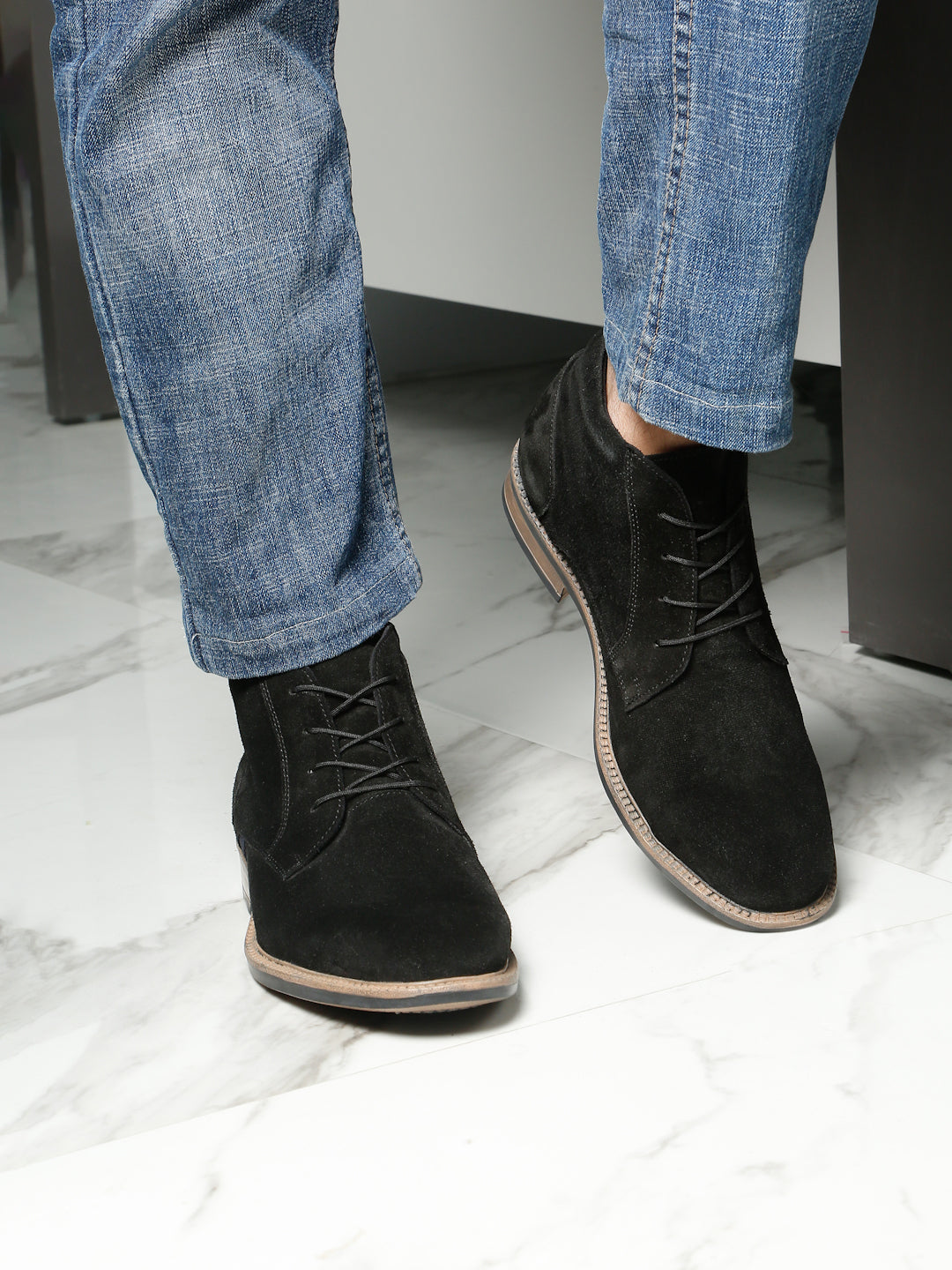 This pair of Teakwood Leather Lace-up boots for men, designed for the modern gentleman. Crafted from high-quality genuine leather, these boots has suede leather and features lace up closure. The cushioned insole and soft lining make them ideal for extended wear, while the sturdy TPR sole delivers grip and stability on every step. Whether you're dressing up for a night out or heading to the office, these boots bring effortless sophistication to any outfit.