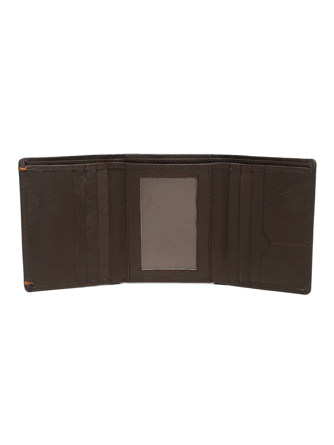 Crafted for the modern man, the Teakwood Leather Men’s Brown Tri-Fold Wallet blends functionality with timeless style. It has 2 Main Cash Compartments, 8 Card Slots, 1 Transparent ID Window, 2 Hidden Slip Pockets