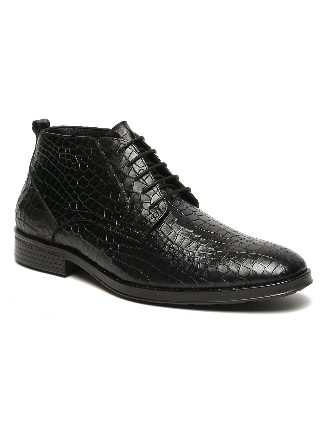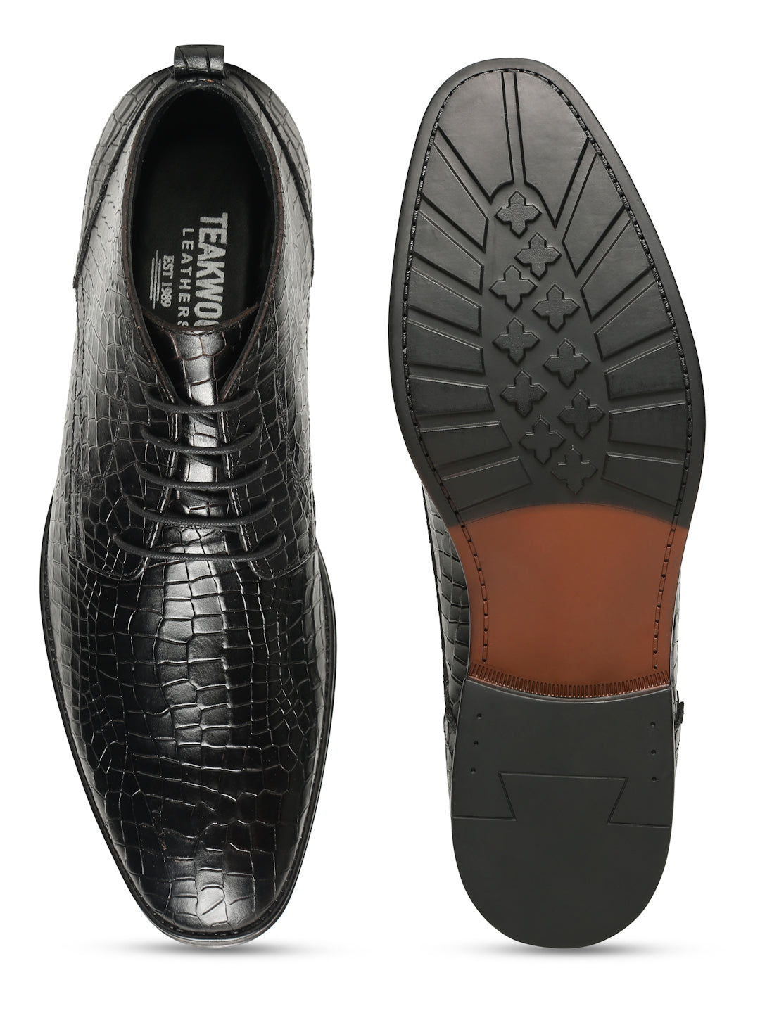 Step up your style game with TEAKWOOD Black Crocodile-Pattern Leather Formal Lace-Up Boots. Designed with genuine leather and a crocodile-textured finish, these shoes exude power, confidence, and elegance. Whether it’s for the office, weddings, or exclusive events, these Boots deliver class and comfort with every step.