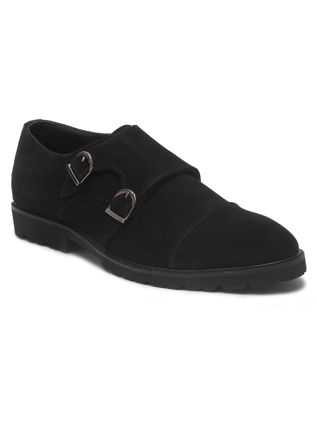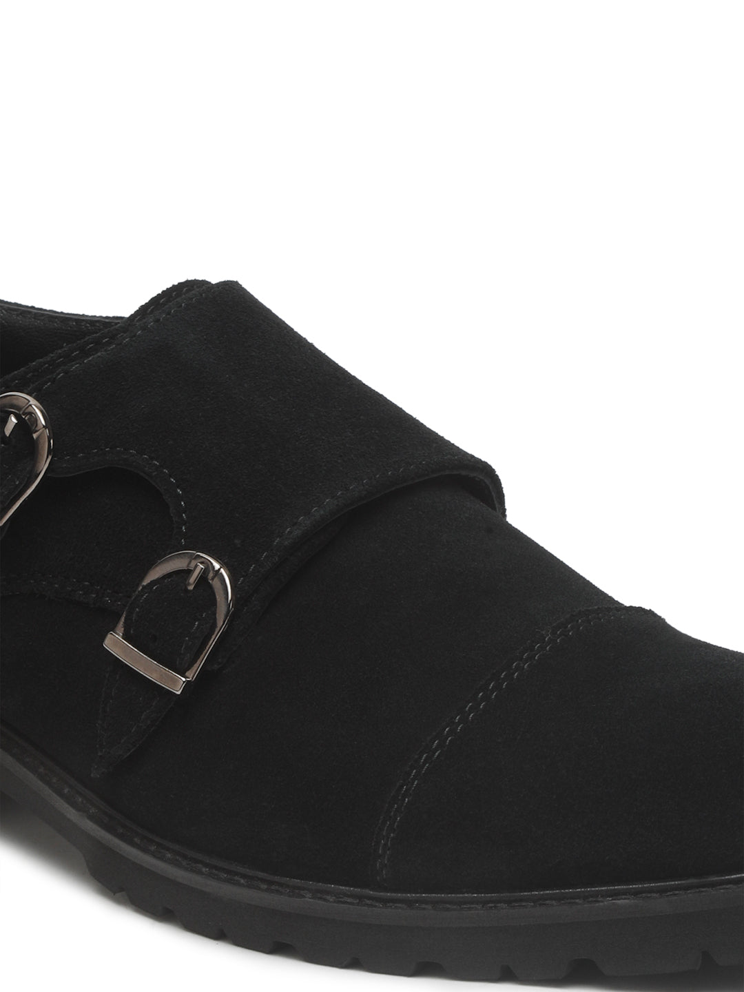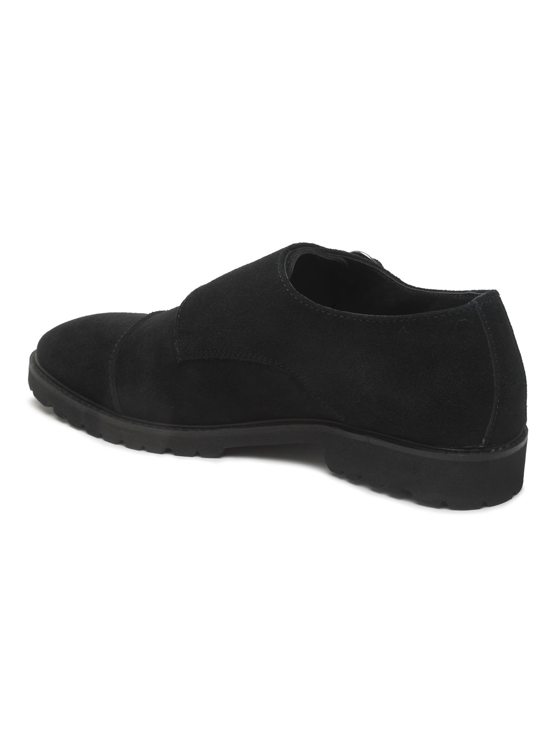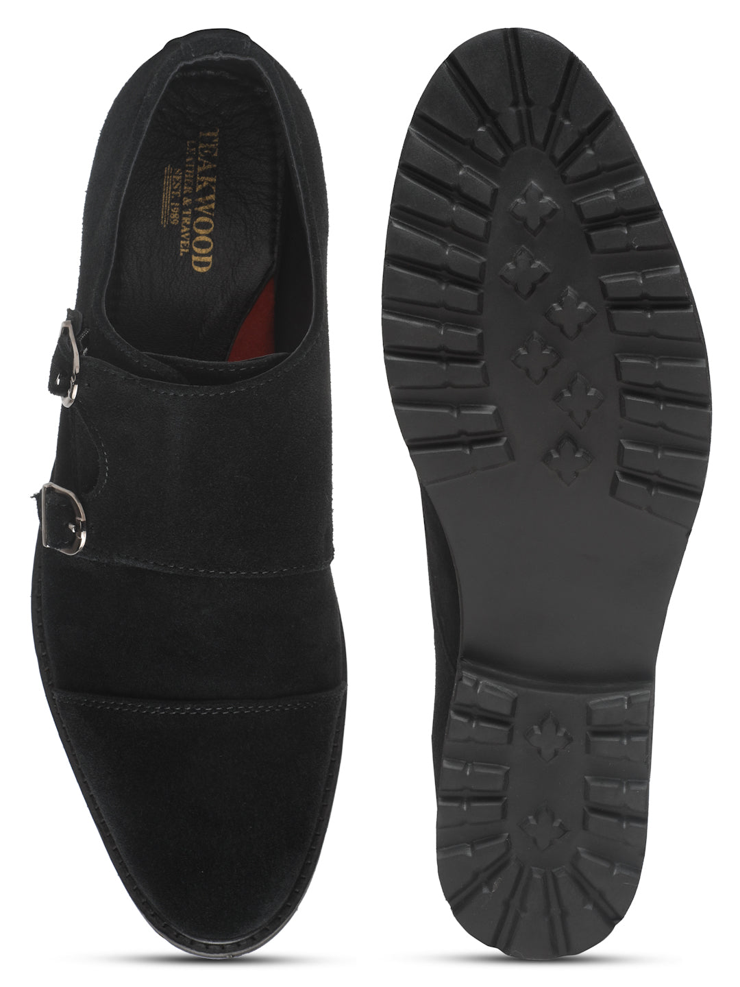 Details: This Teakwood pair of Black suede Leather Moccasins shoes has slip-ons and buckle details. It has round toed, anti-skid with ultra light eva sole, has Cushioned footbed for extra comfort and highly flexible with blocked heel.