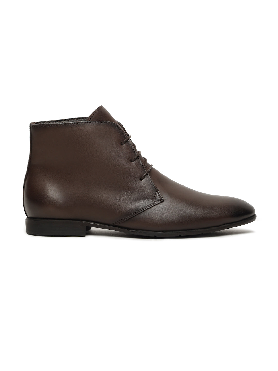 Men's Brown Solid Leather Lace-up Chukka Boots