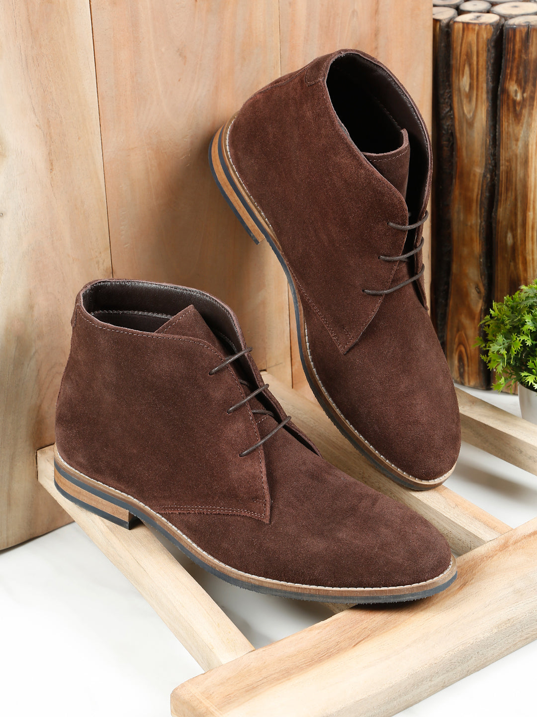 This Teakwood Leather cafted from premium suede leather, these boots offer a perfect fusion of rugged charm and refined elegance. It has lace-up With Round toed, Breathable Inner Lining for Comfort and Cushioned footbed, Thunit sole with with Wood-Finish Accent.