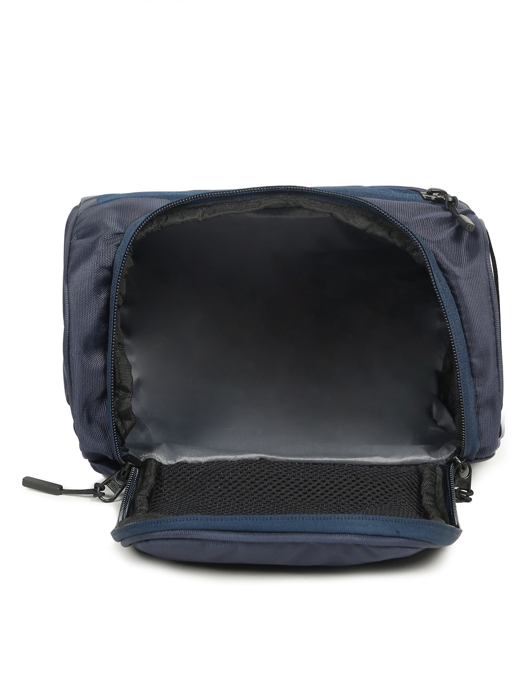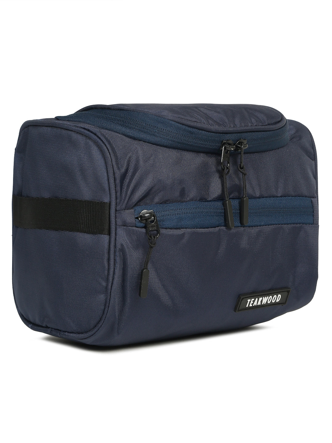 This Teakwood Leather crafted from durable, water-resistant fabric in a sleek navy finish, offering both style and resilience. Features one large compartment to hold toiletries, grooming tools, or cosmetics. Includes a mesh zippered section on the flap and an exterior zippered pocket for quick-access items like razors, nail clippers, or toothbrushes. Comes with a side handle for easy carrying or hanging, ideal for travel or gym use.