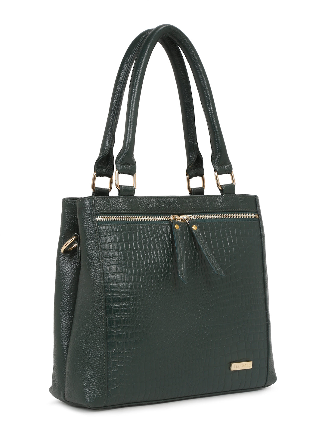 Green animal textured handheld bag, with cut work detail